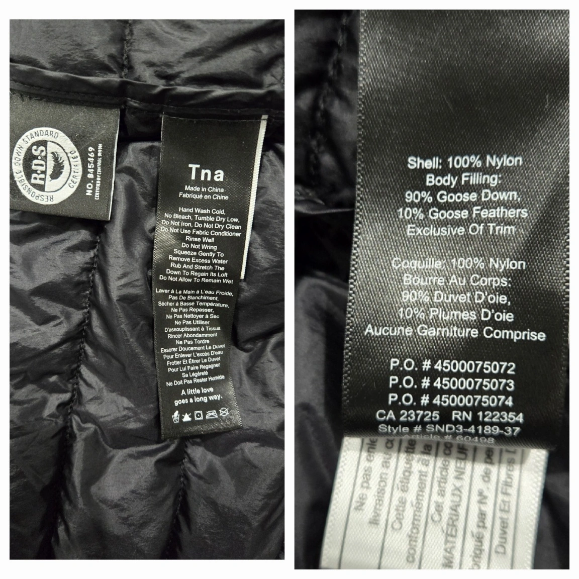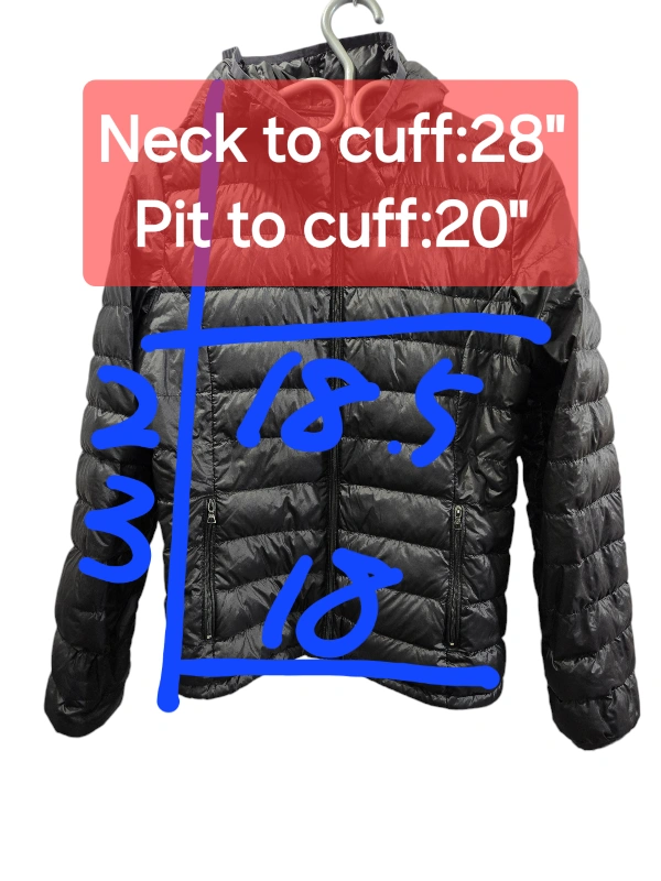 1000+Aritzia TNA Botanie Packable Lightweight Puffer Jacket in Size S Approximate full measurements are shown in the attached image. Condition: 8/10 There are no visible flaws, but there are signs of minor general wear throughout. Fabric: - Shell: 100% nylon - Filling: 90% goose down, 10% goose feathers Features: - Super lightweight - Full zip-up closure with hood - Side pockets with zippers - Ideal for fall to early winter I am not a professional seller. I do not own a store or website. **Pick-up or Meet-up**: - Finch (Primary location for collection) - Downtown (Reserved for a designated collection day) Now Karrot lets you make a bundle. Make a bundle and I will send you an offer after the discount.