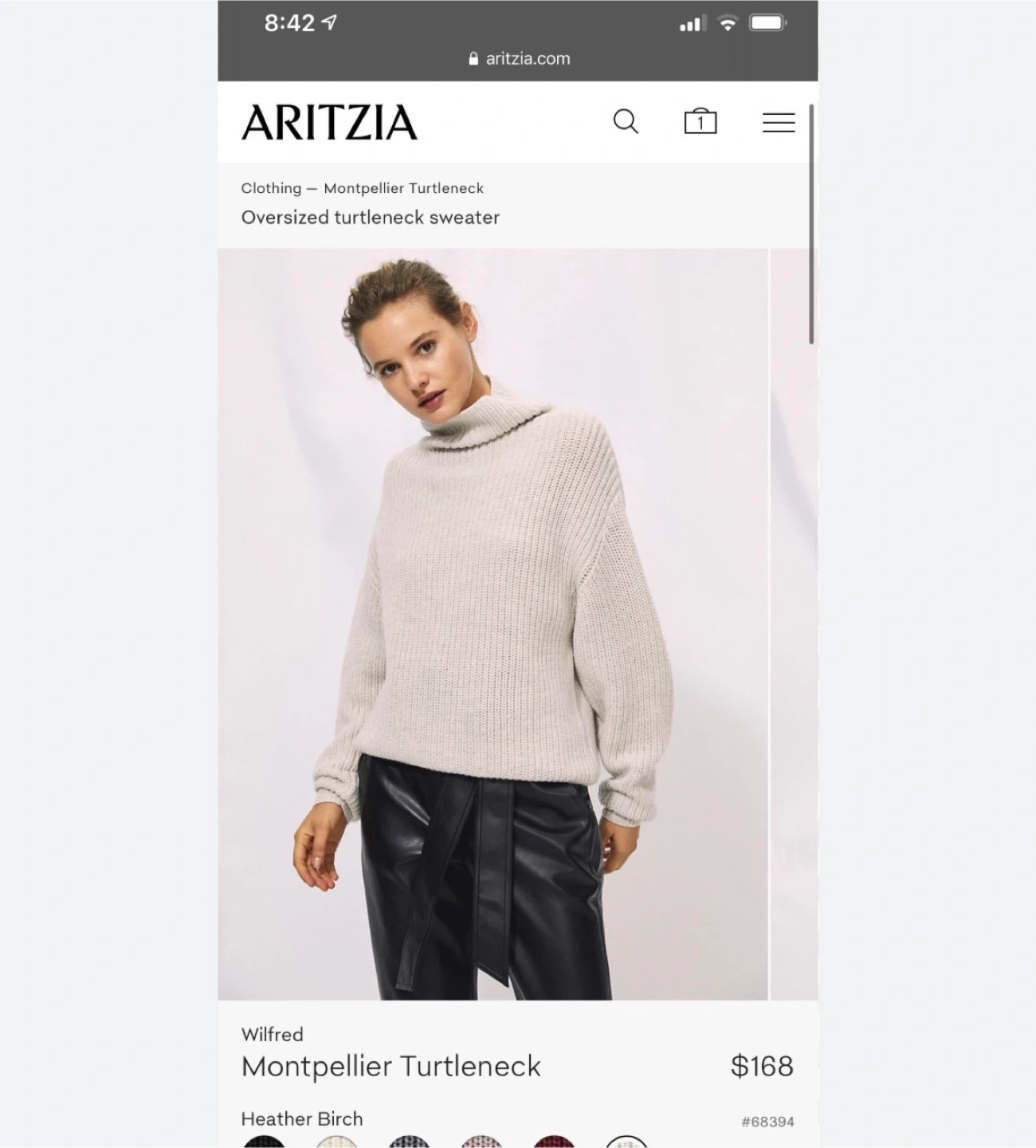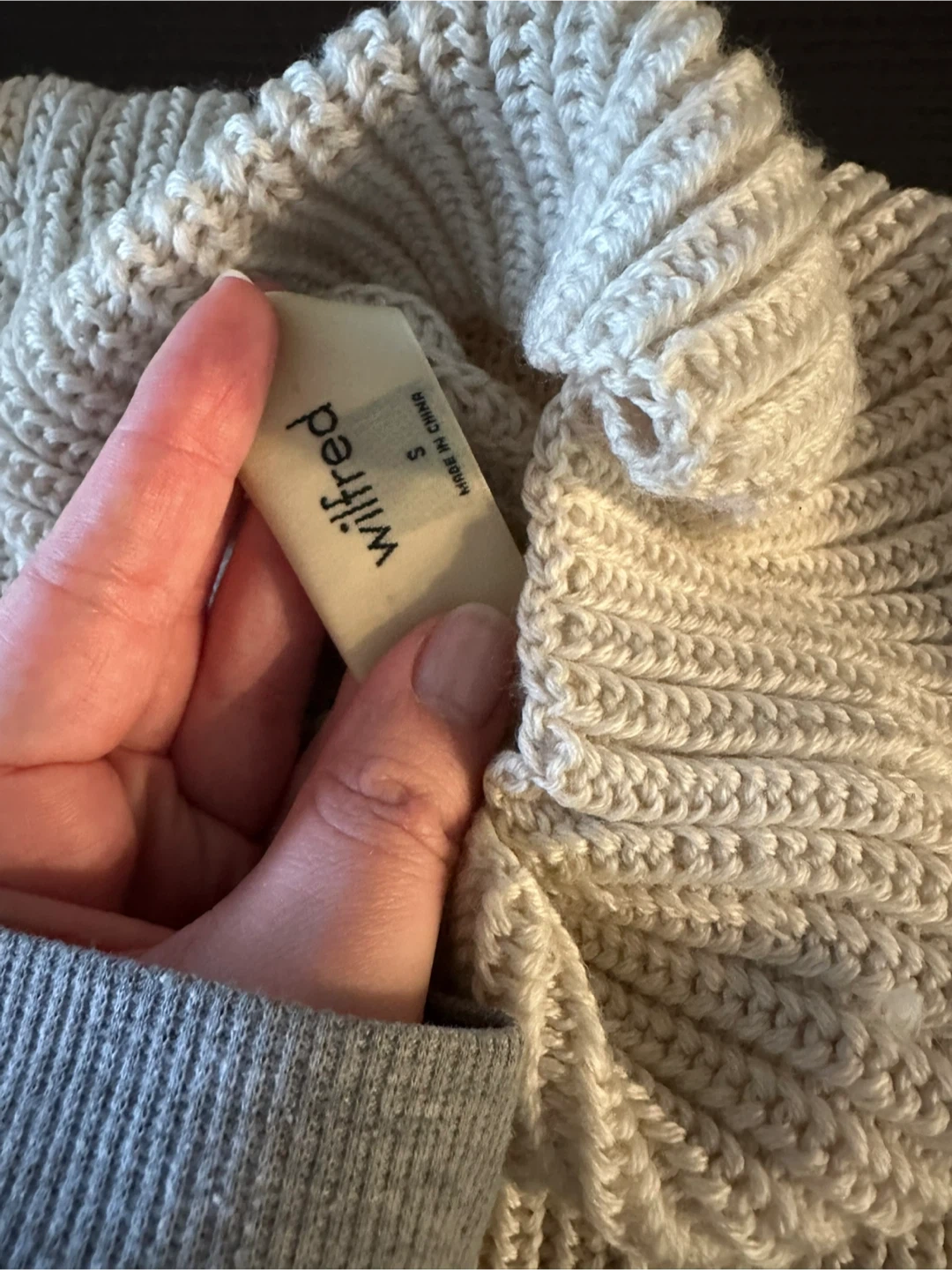 420Selling a Wilfred Montpellier Turtleneck in size small - fits bigger. It's a beautiful, cozy sweater made of 100% merino wool. Originally bought for $168 plus tax. Worn twice, like new - no peeling. Cash only, pick up downtown only.
