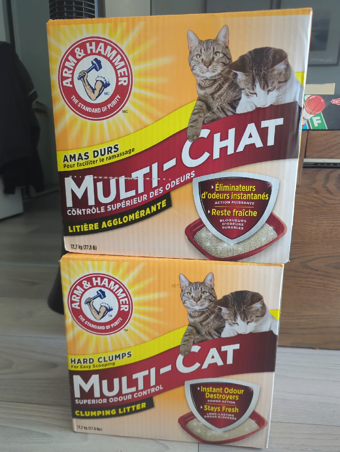 1000+Selling a box of unopened Arm & Hammer Multi-Cat Clumping Cat Litter 12.7 kg. The other opened box is free (has about half left) pick up only