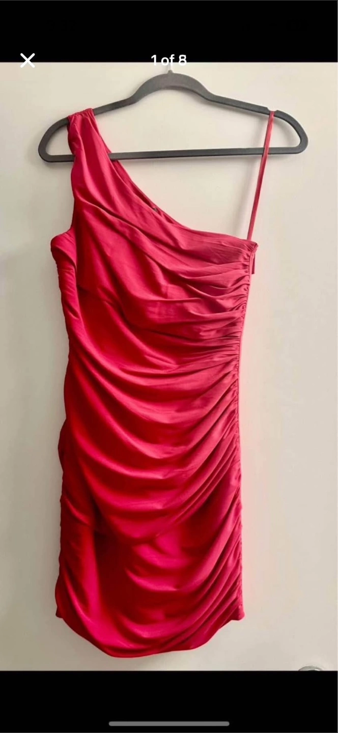 Worn once! Selling a vibrant red dress from Armani Exchange in size 4! It features a stylish one-shoulder design and ruching detail. Perfect for a night out or special occasion! It’s a great colour too!