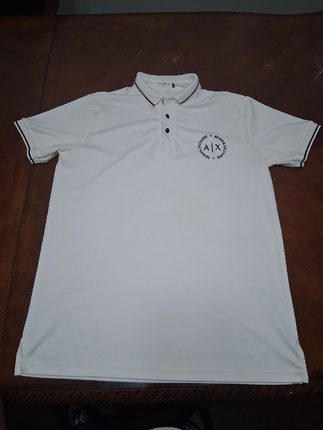 Here's a clean white polo shirt from Armani Exchange! It's a classic style that would look great in any wardrobe. The shirt features the A/X logo on the chest. Perfect for casual outings or a more dressed-up look