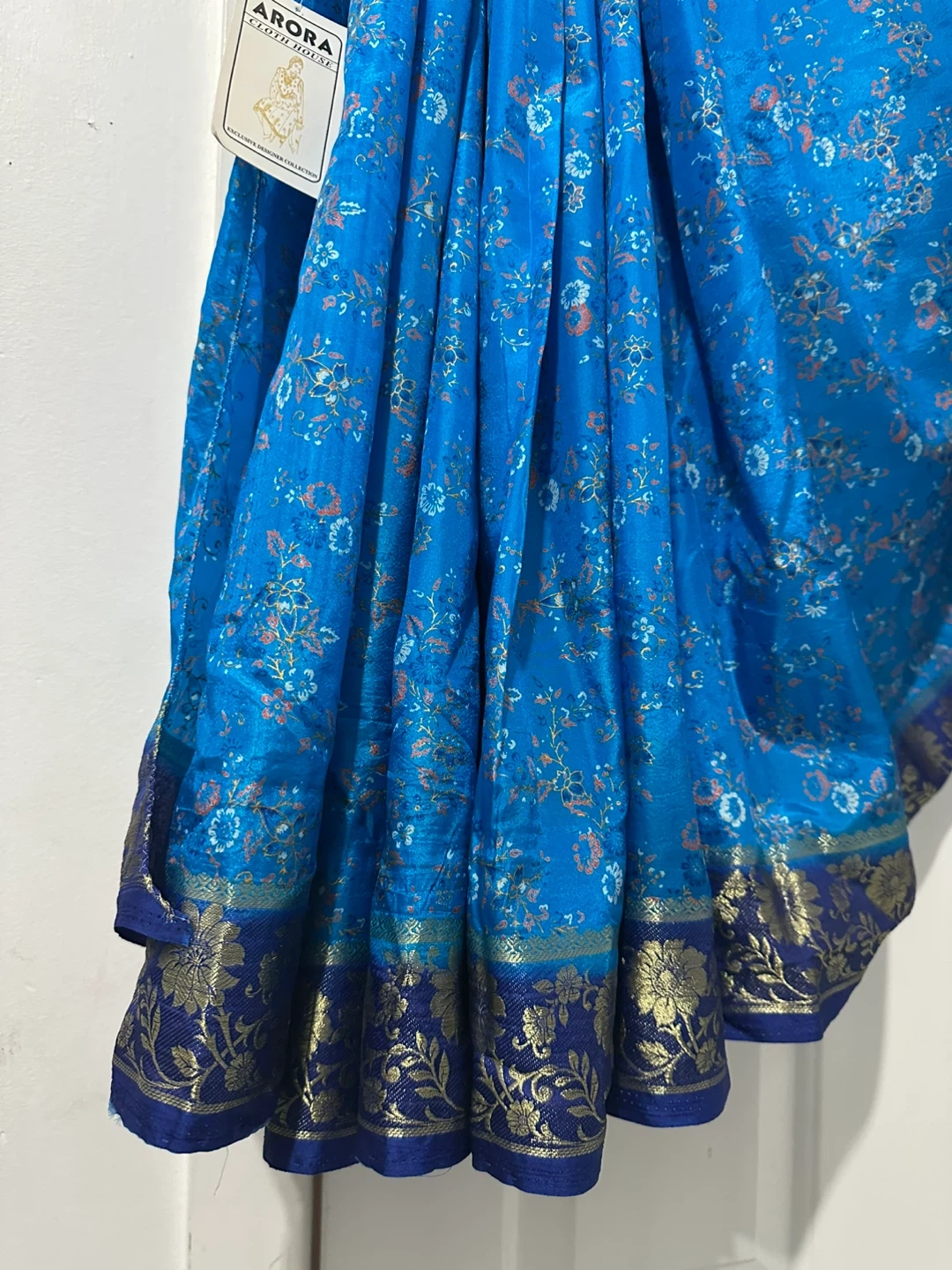 28Selling a beautiful Arora Cloth House saree in a lovely combination of blue and navy. The saree features intricate gold detailing. It's in great condition and ready for a new home!