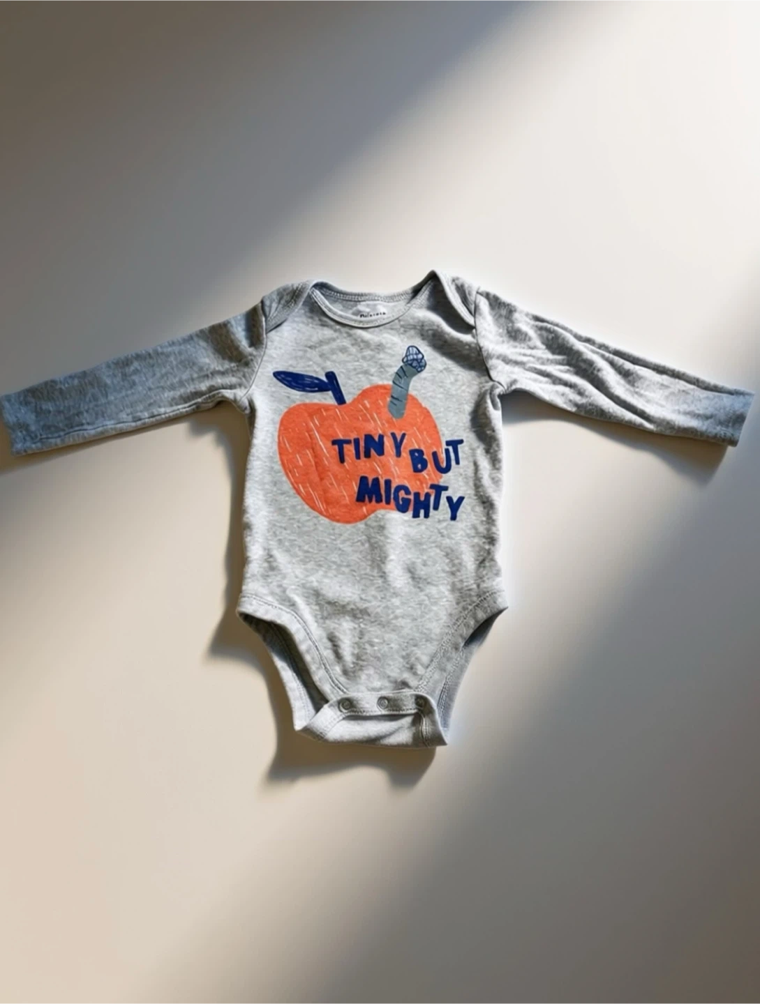 "Tiny But Mighty" Long Sleeve Grey Bodysuit - 6-12 months