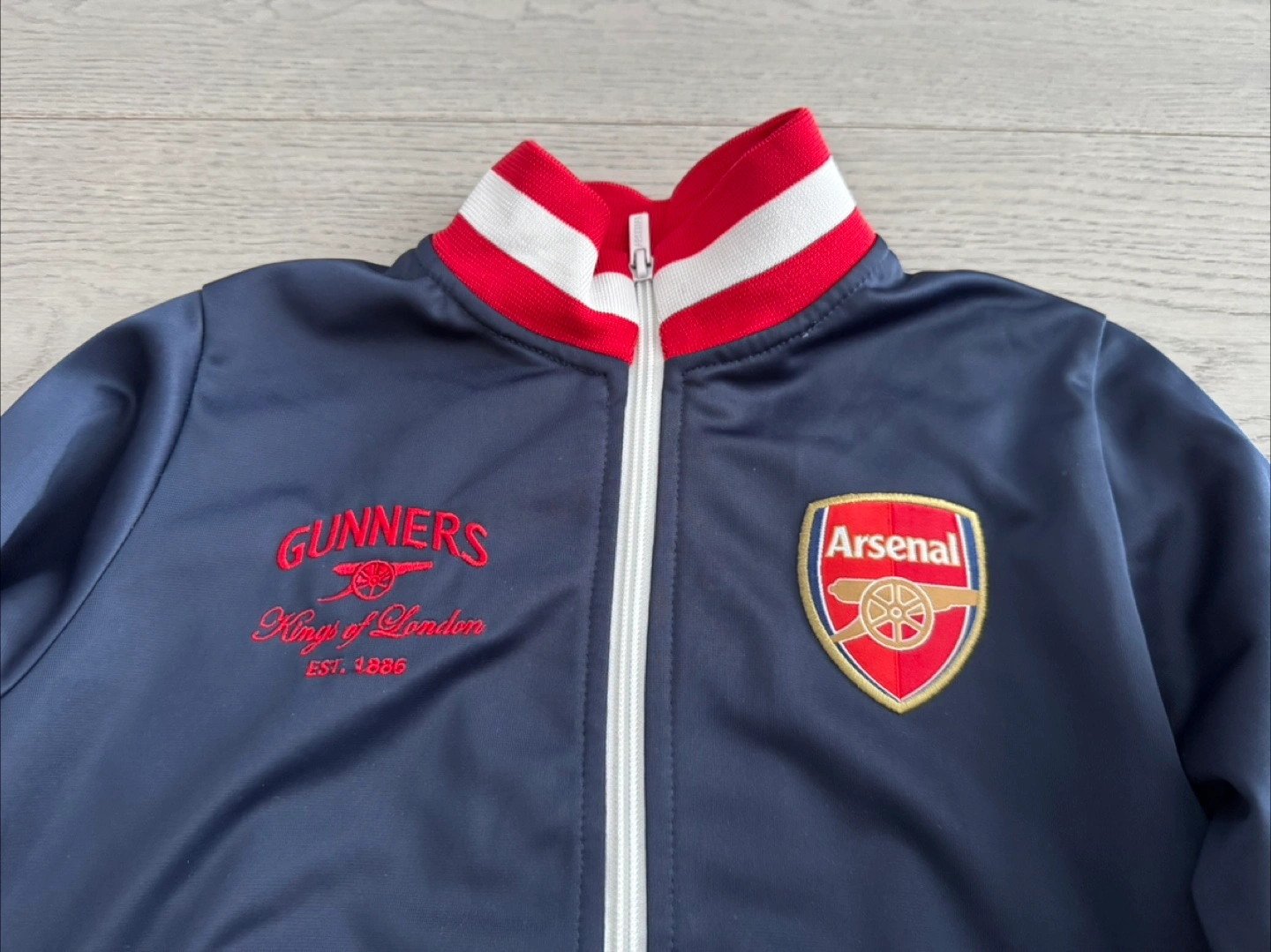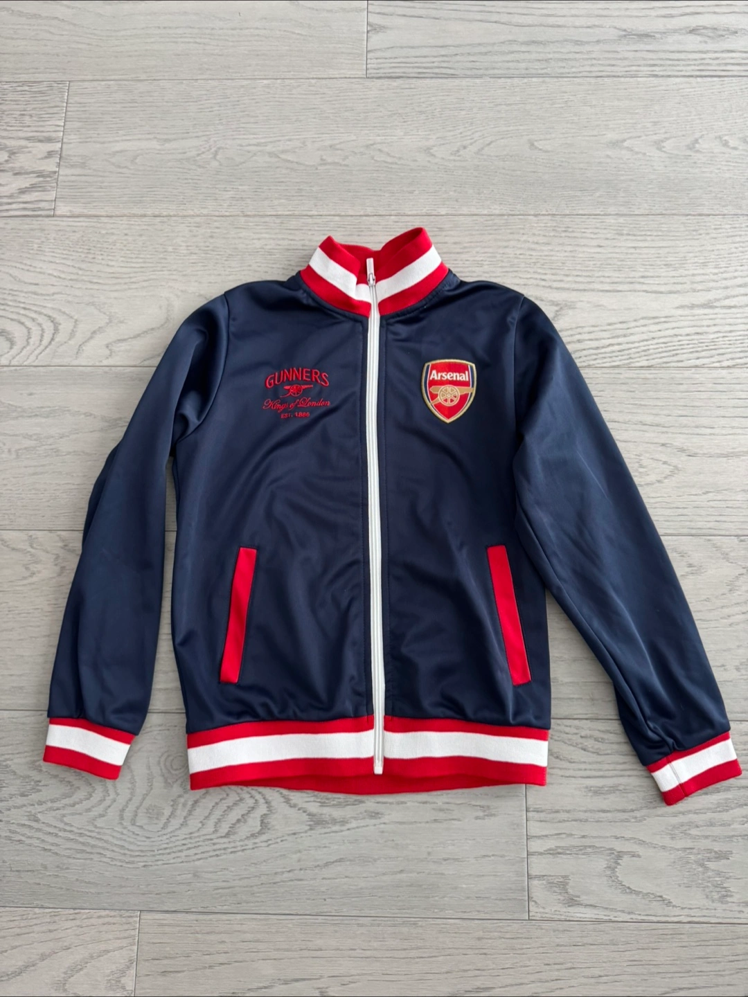 10Selling an Arsenal Gunners track jacket! It's in great condition (but cut out the label) and features the Arsenal logo and 'Gunners Kings of London EST. 1886' embroidery. Perfect for any Arsenal fan!