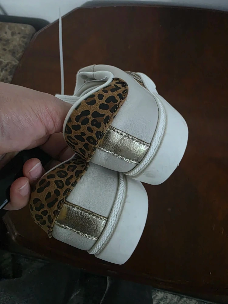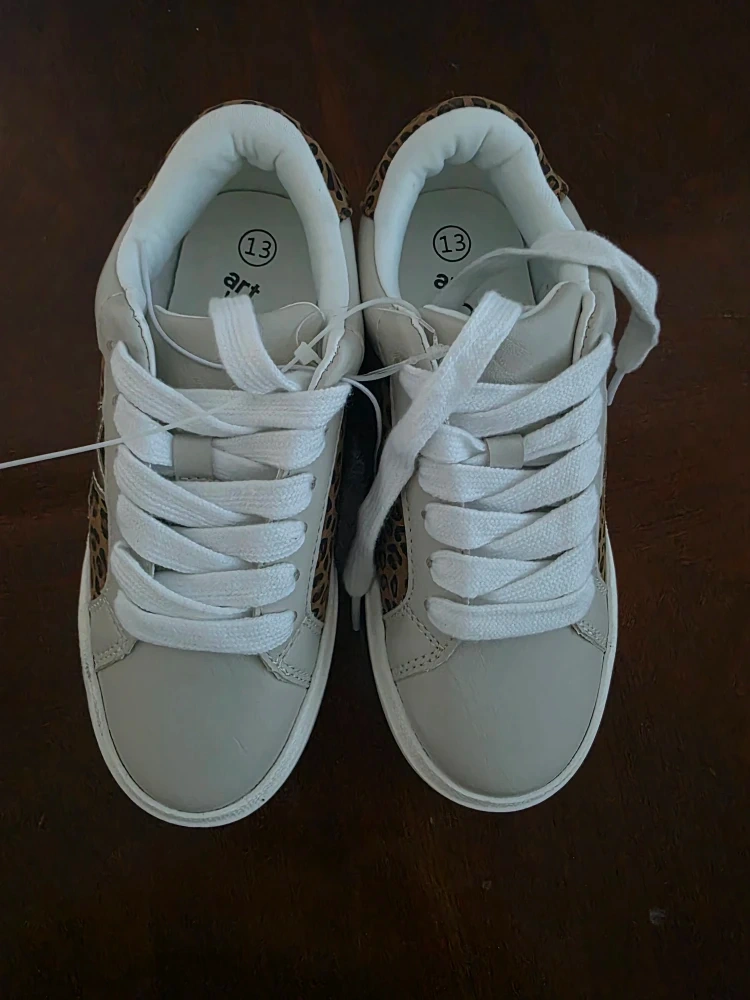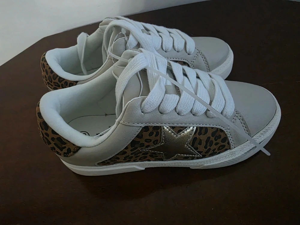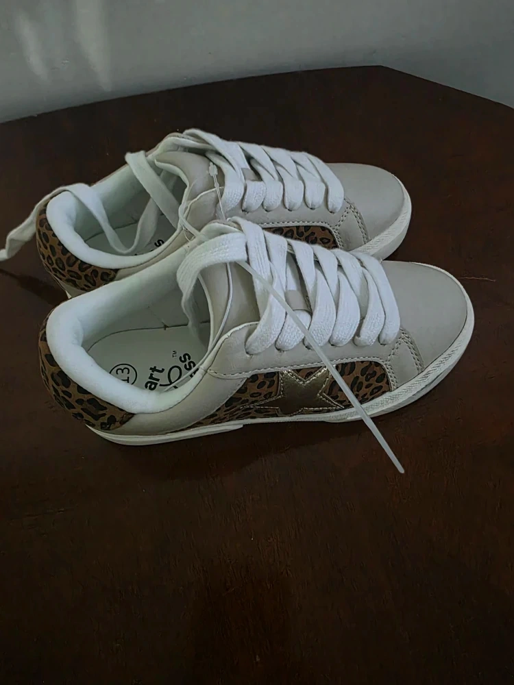 41Cute Art Class sneakers for kids in size 13! They feature a stylish leopard print and a gold star detail. Perfect for everyday wear!
