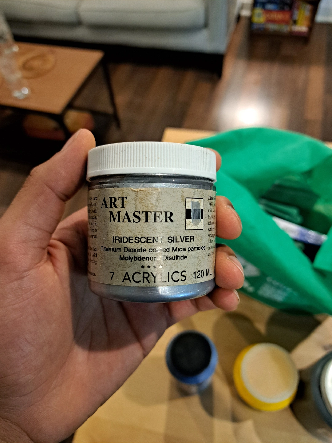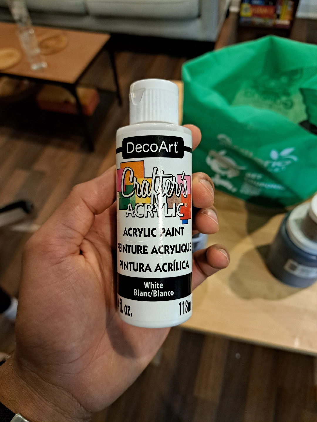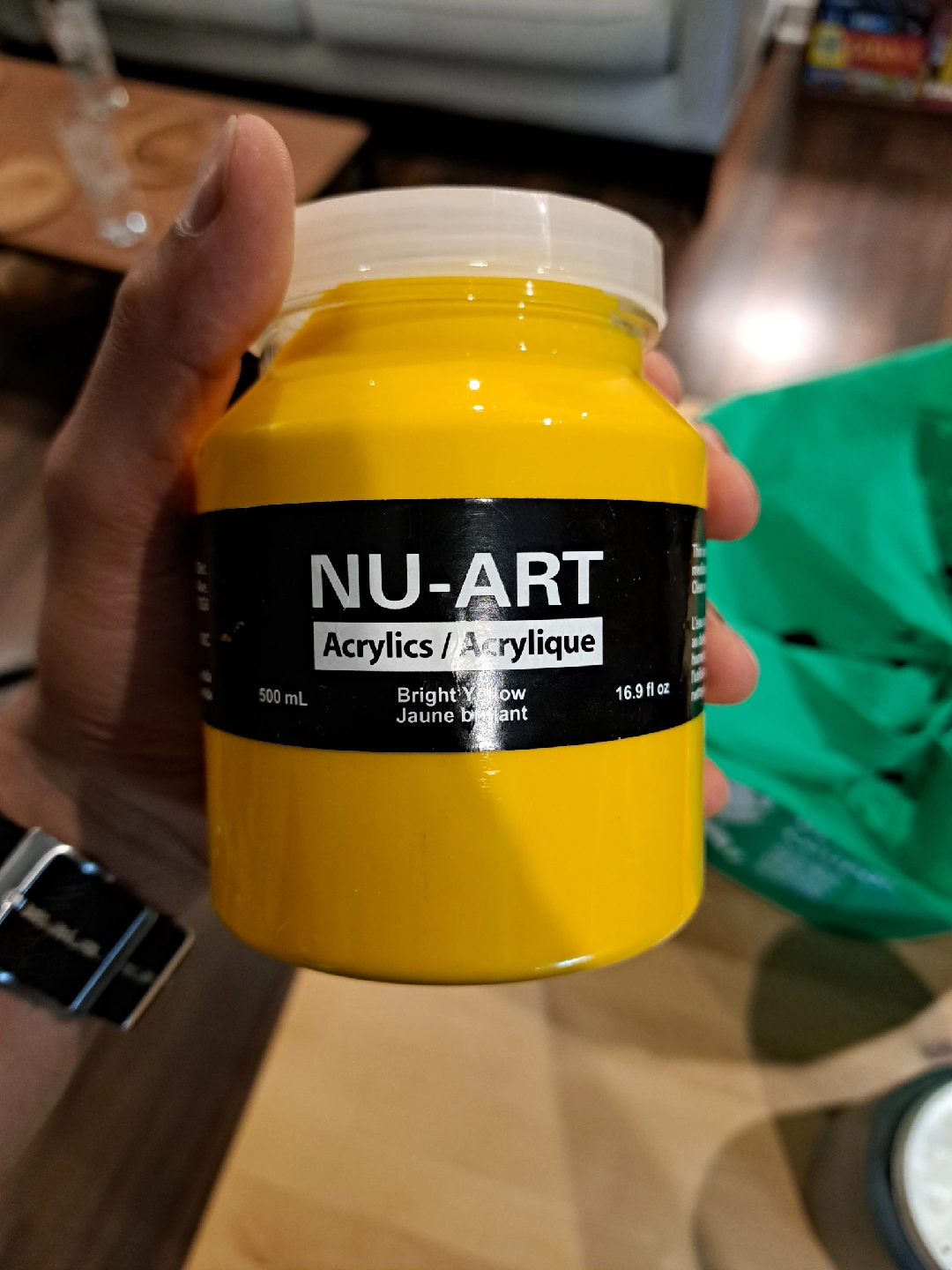 Selling a collection of art supplies! Includes various acrylic paints from brands like Nu-Art, DecoArt, FolkArt, and Krylon ColorMaster spray paint. Also comes with a set of paintbrushes and an 8x8 inch Winsor & Newton Artists' Canvas