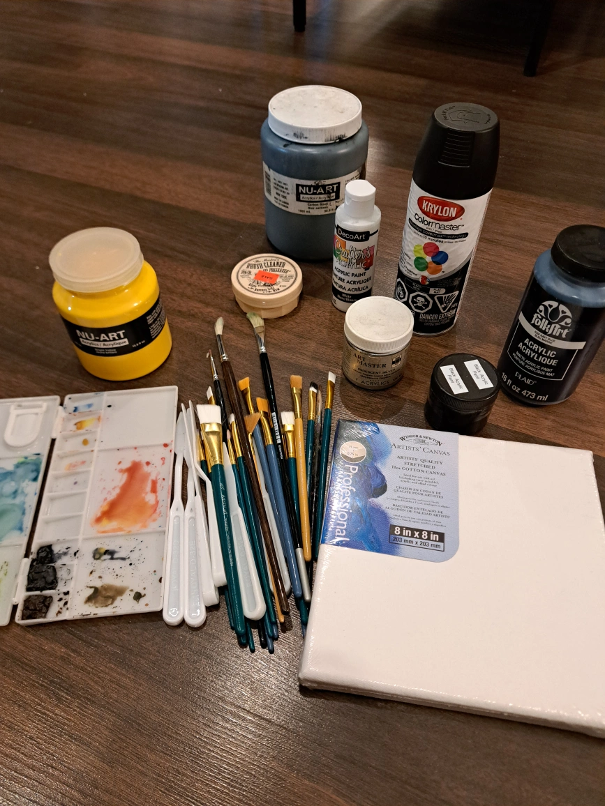 Art Supplies: Paints, Brushes, 8x8 Canvas