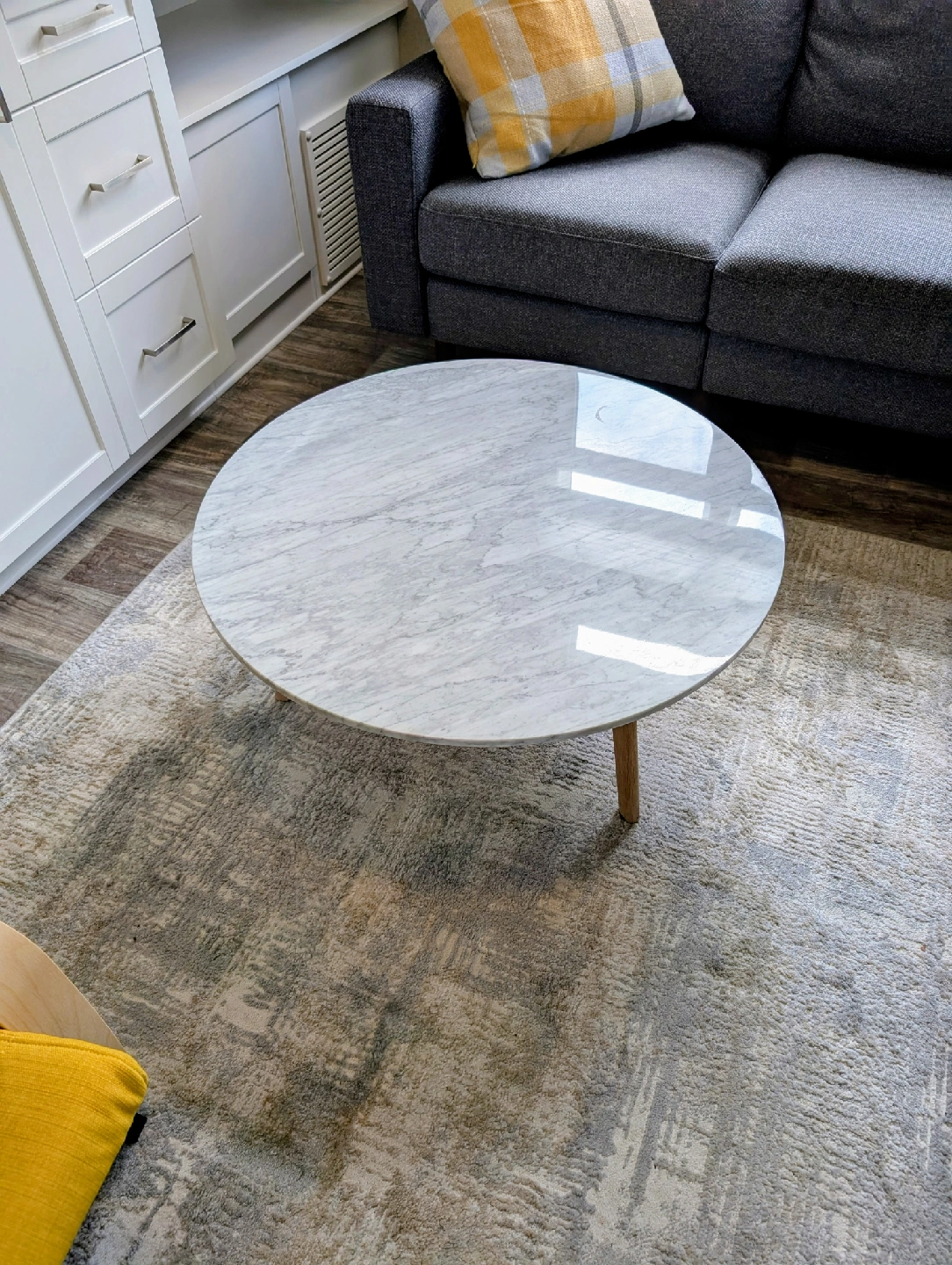 Selling a beautiful Article Furniture marble top coffee table! It features a real marble top and a sturdy wooden base. It's in great condition and would be a stylish addition to any living room