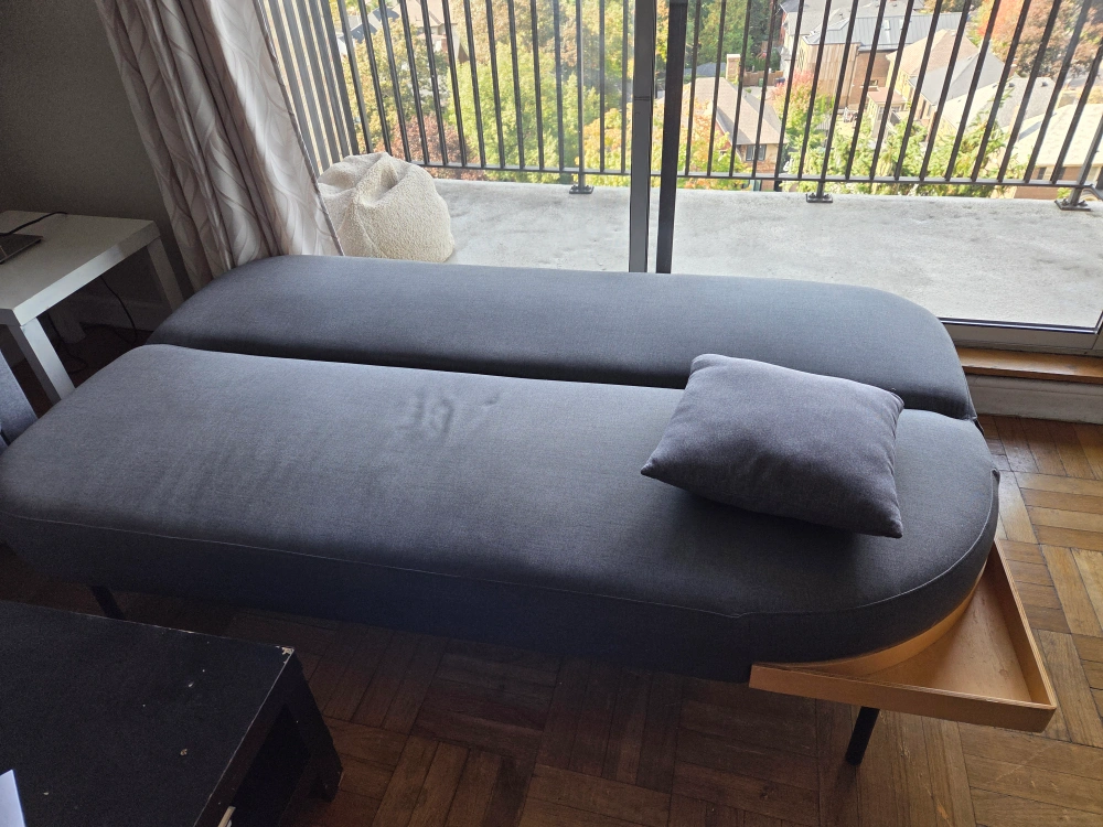 Selling a gently used Article Oneube Sofa Bed in grey. It's in great condition and perfect for small spaces or a guest room. The sofa easily converts into a comfortable bed. It's a stylish and functional piece of furniture!