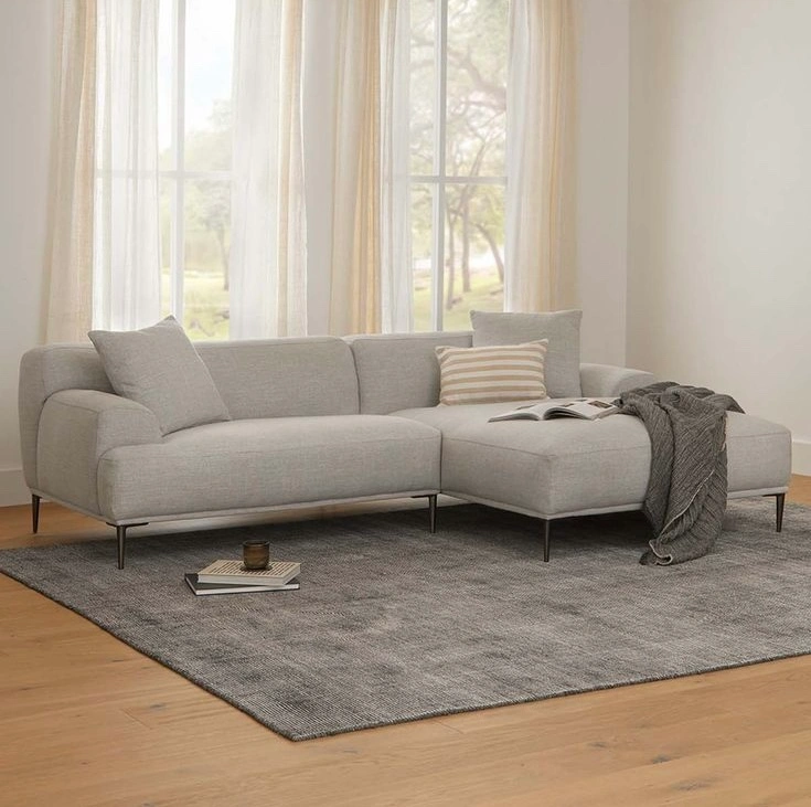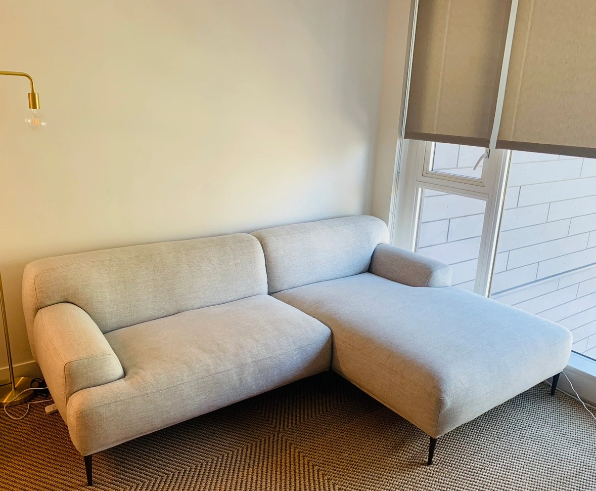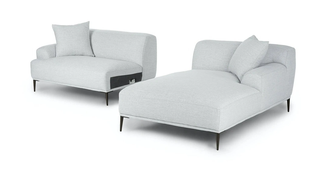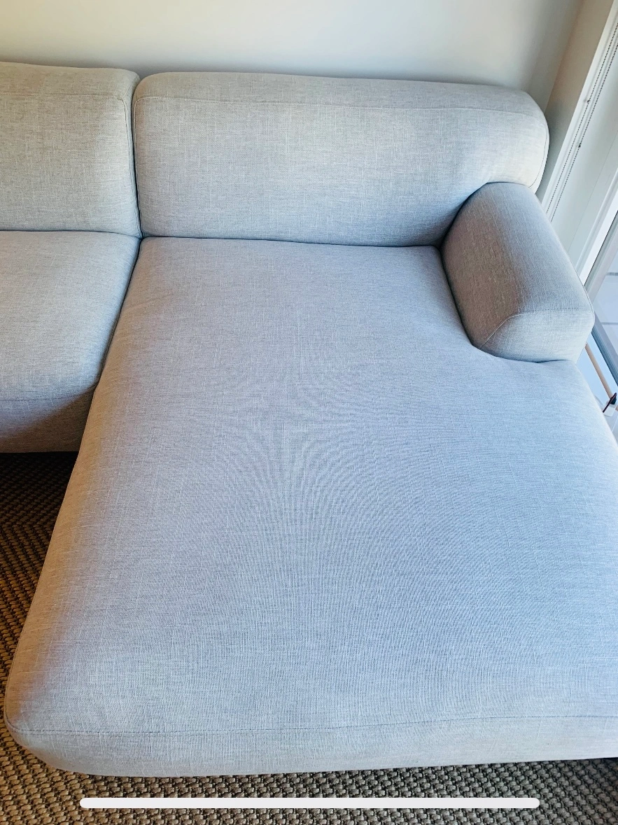 211Stylish sectional couch by ARTICLE (Abisko Mist Gray Right Sectional). Soft gray upholstery with titanium-finished legs. Rarely used and in excellent condition. Purchased for $2399 selling set for $945. Pickup in Olympic Village or we can deliver to you on September 22nd (only) if relatively close as we have rented a van.