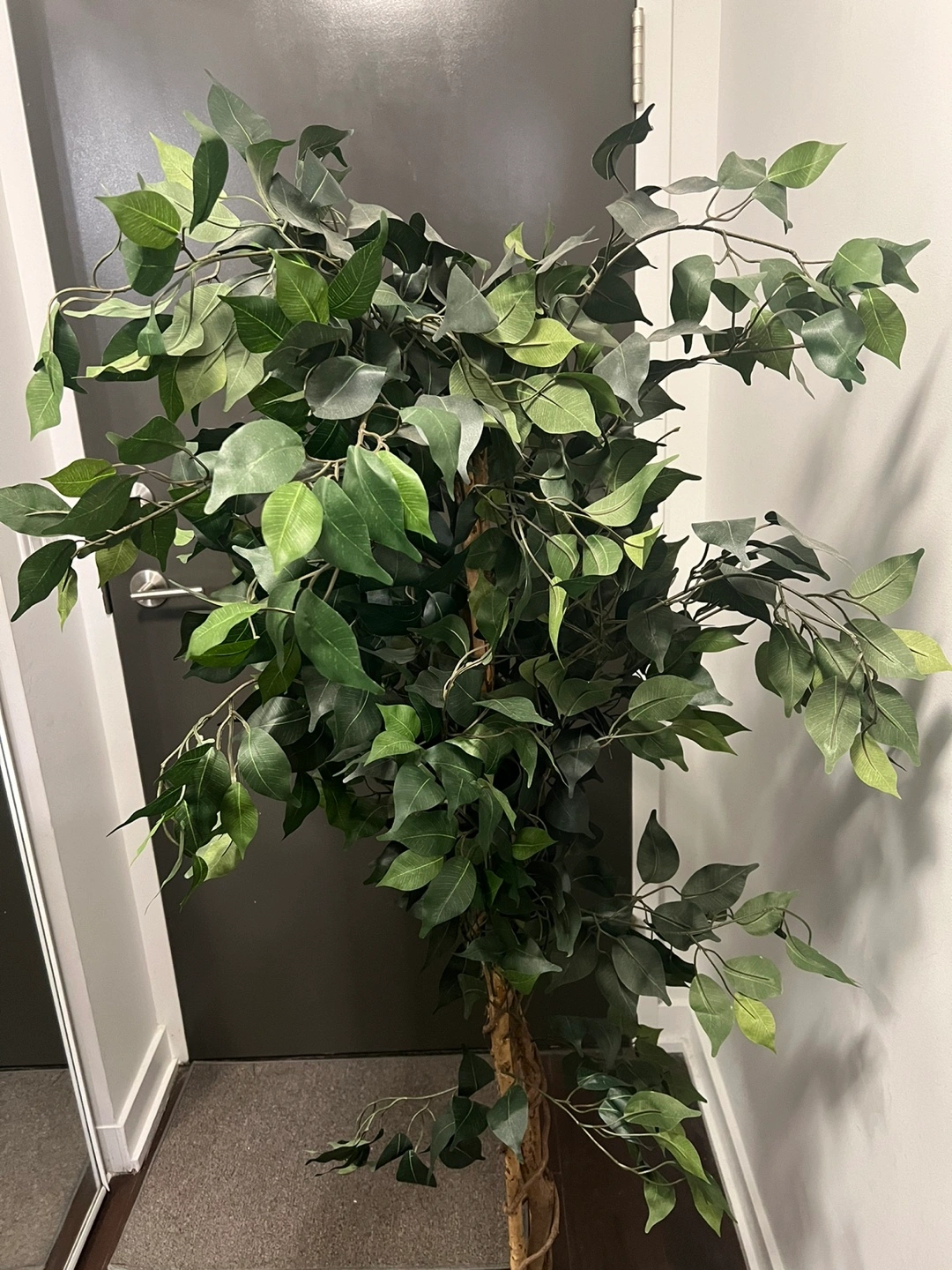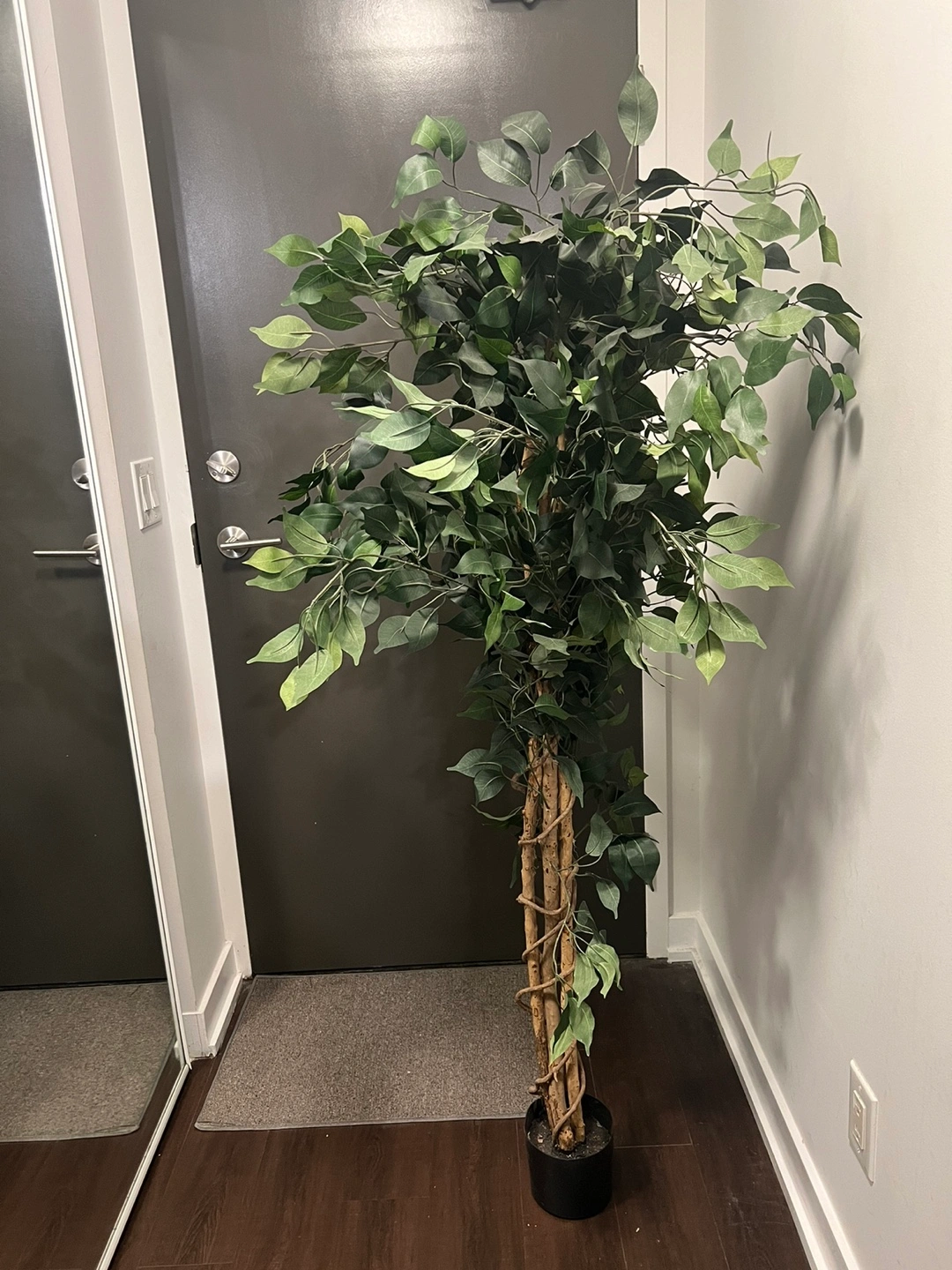 Artificial Ficus Tree. 5ft tall and lush. In a black pot.