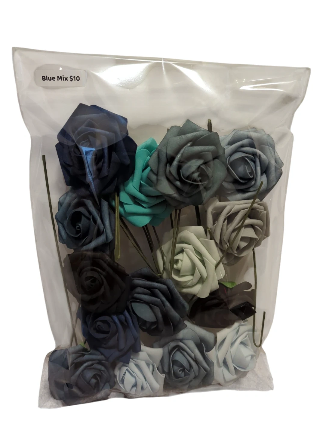 10I have a mix of artificial foam roses available. They come in green, blue, and random colour mixes. Perfect for crafts or decorations! Please let me know which mix you'd like. Prices are on the Picture. These are new not used Foam roses.