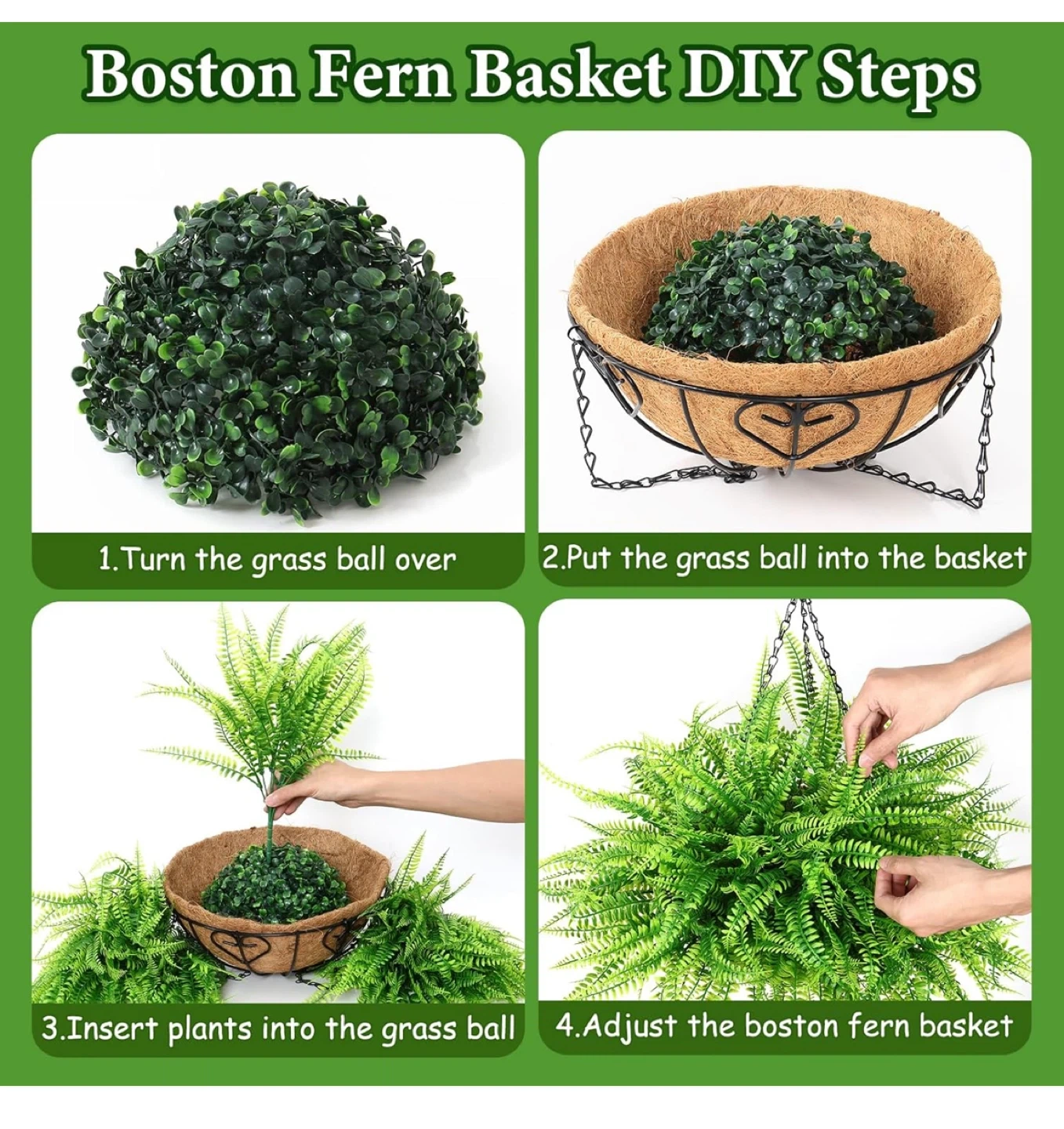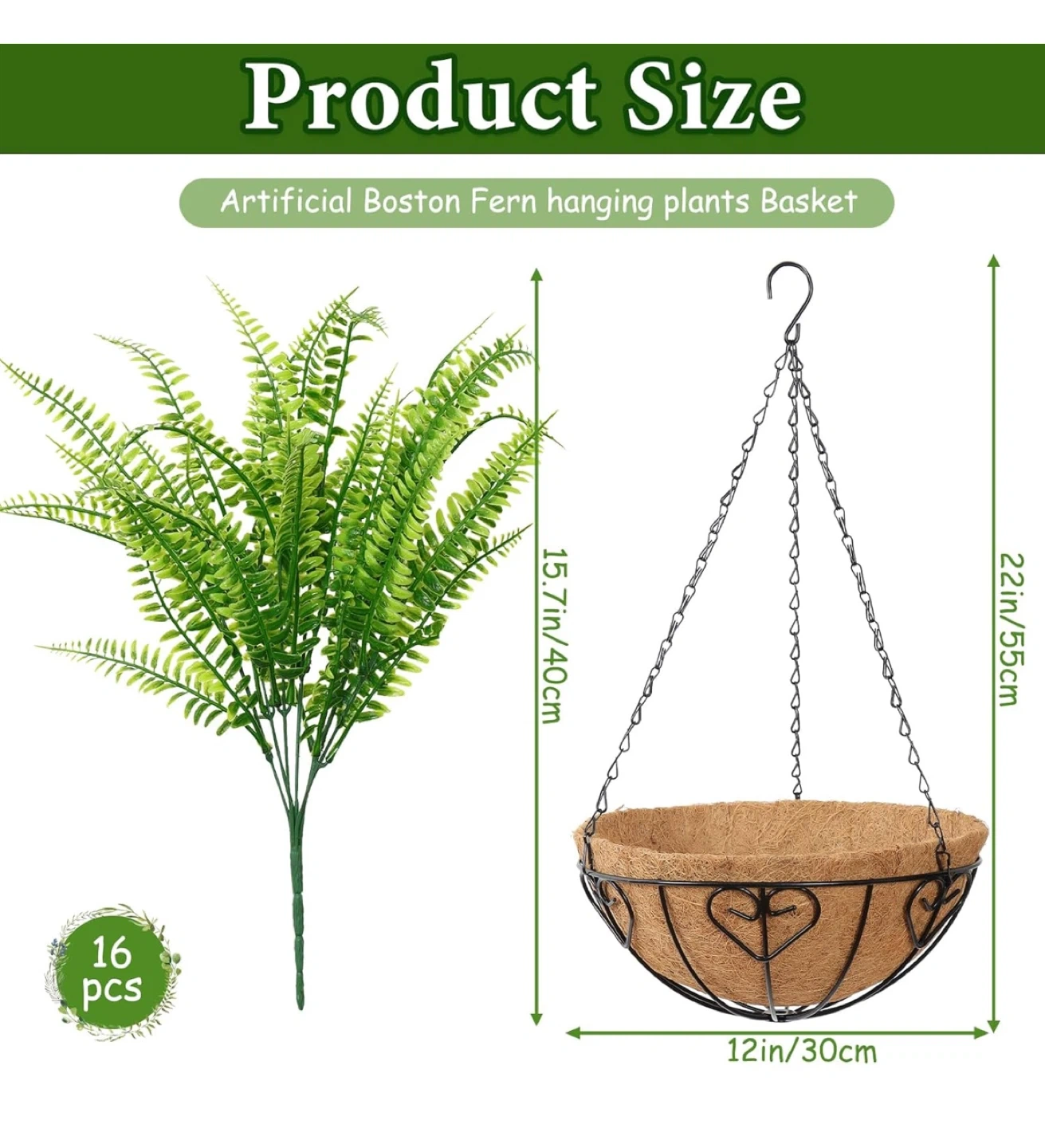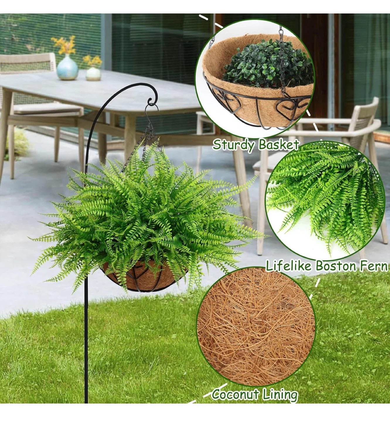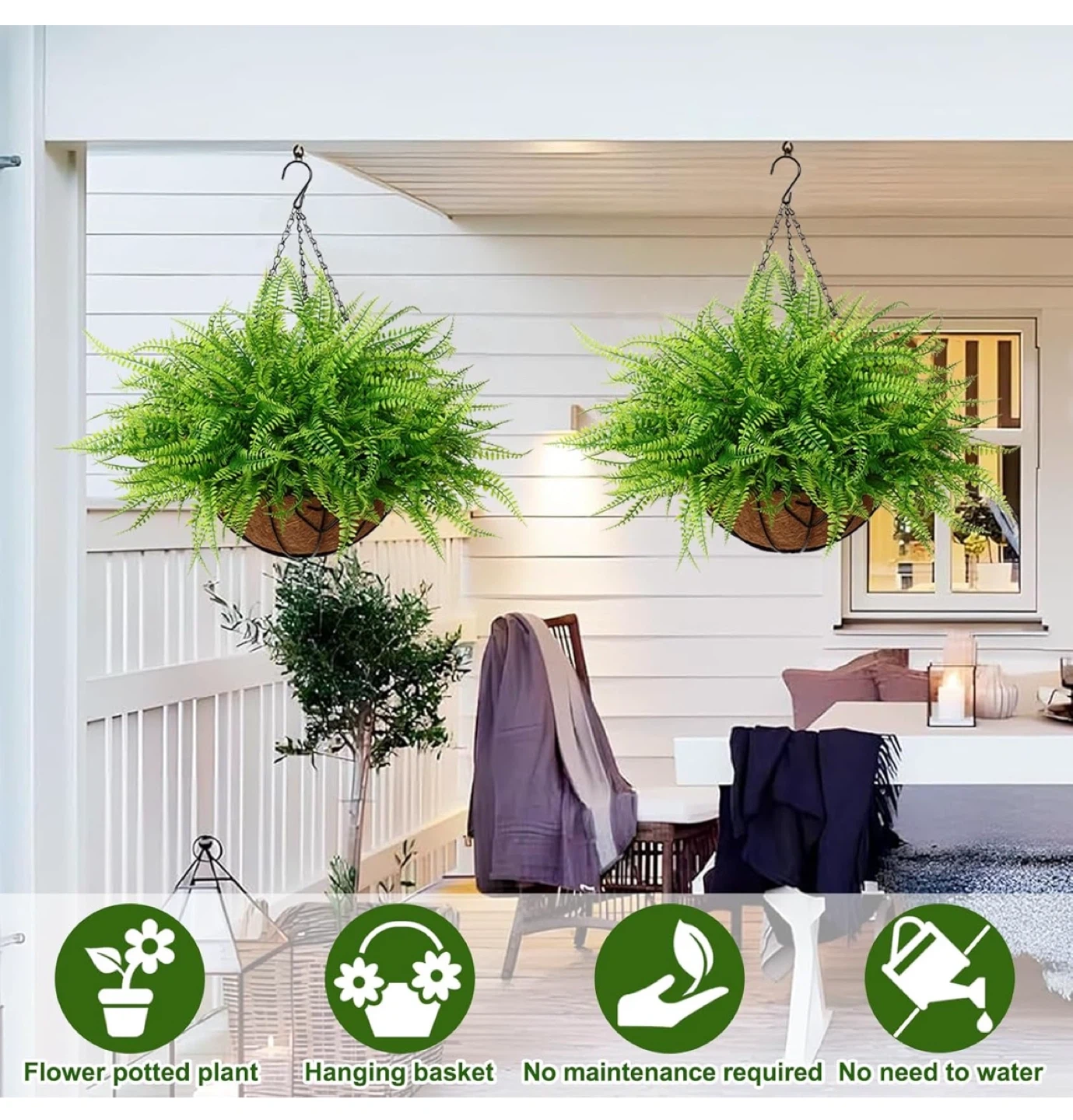 KHOYIME Artificial Hanging Plants with Basket 2PCS Fake Boston Fern Baskets, Outdoor Faux Greenery Stems Hanging Decor UV Resistant Indoor Outside Decorations for Home Garden Porch Balcony Patio Yard