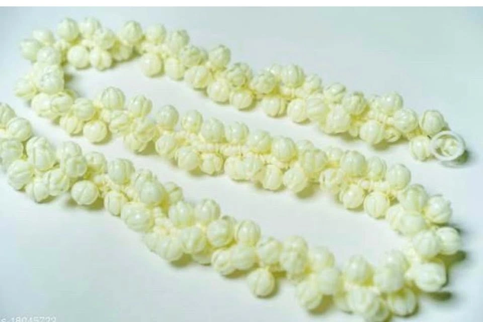 10Artificial Realistic Jasmine Gajra/Jasmine Garland Mullapoov Mala (100CM) with Real Jasmine fragrance for women, used as hair Accessories Material: Plastic Type: Artificial Flowers Product Breadth: 5 cm Product Height: 1.5 cm Product Length: 100 cm Net Quantity (N): 1