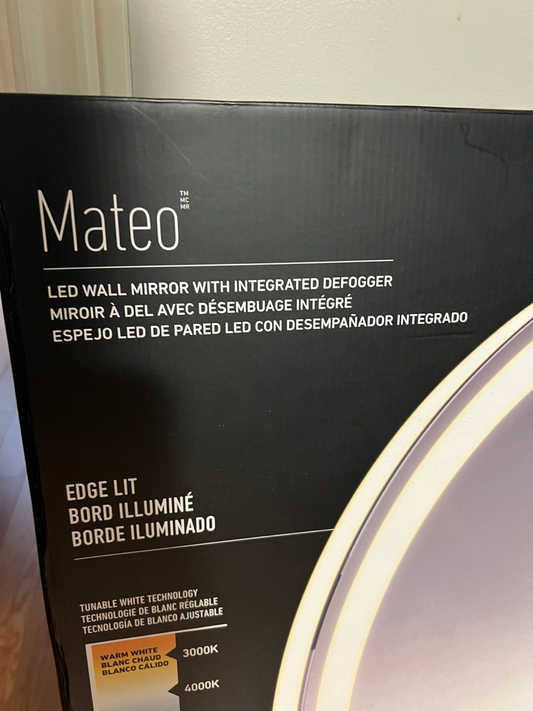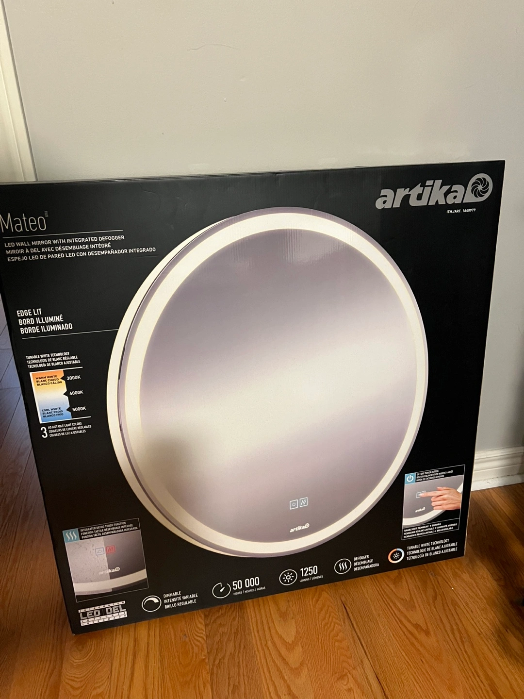 Selling a brand new Artika Mateo LED Wall Mirror with Integrated Defogger! It's still in its original box and has never been used. Key features include: - LED lighting - Integrated defogger - Tunable white technology with 3 adjustable light colours (3000K, 4000K, 5000K) - Edge lit design - 50,000 hours of light - 1250 Lumens