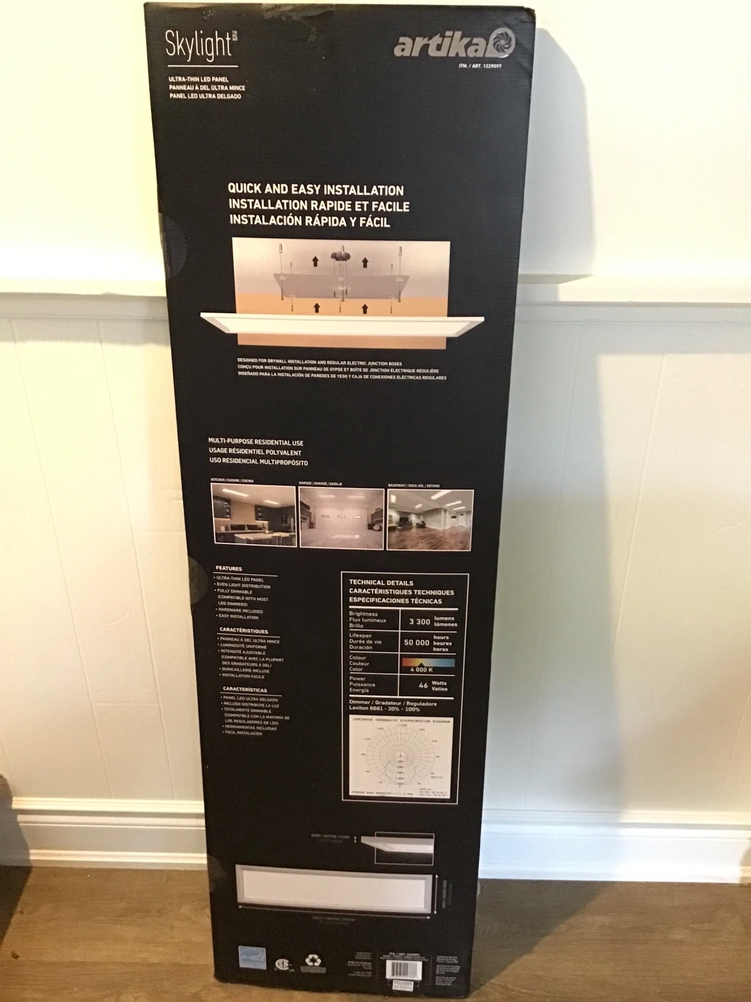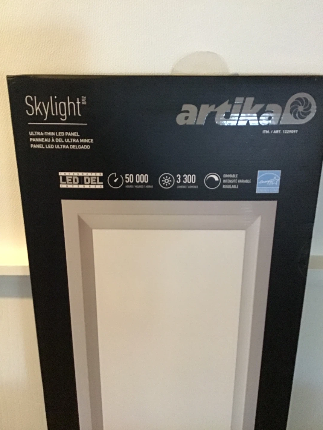 46Selling an Artika Skylight ultra-thin LED panel! It's still in its original box and ready to brighten up your space. This panel offers even light distribution and is fully dimmable to create the perfect ambiance. It has a lifespan of 50,000 hours, brightness of 3300 lumens, and a colour temperature of 4000K