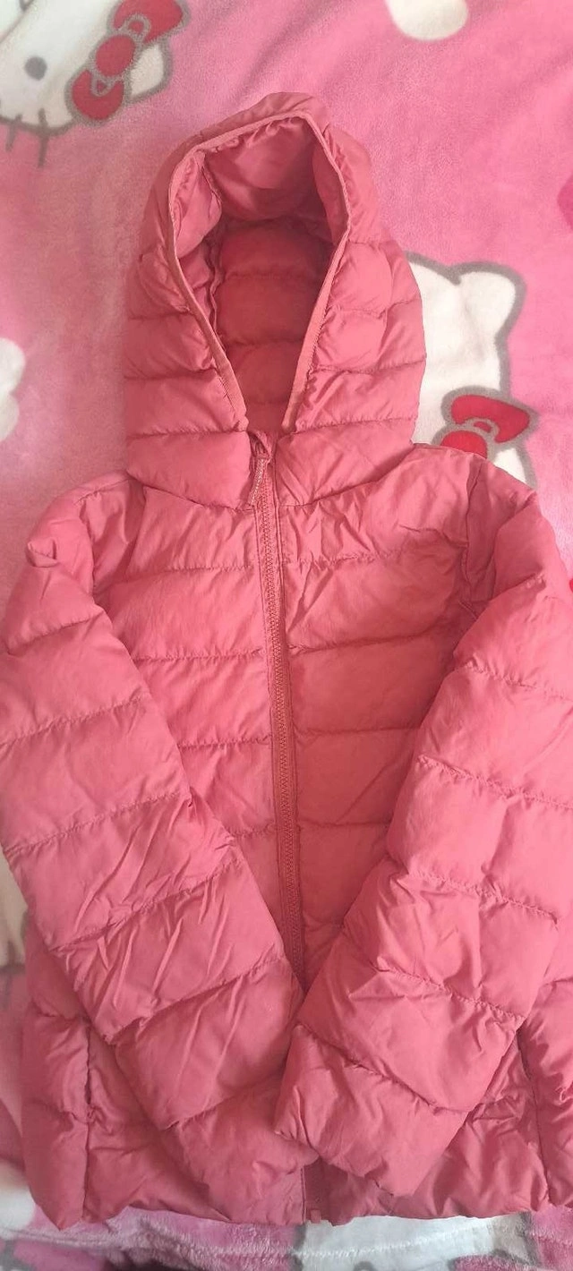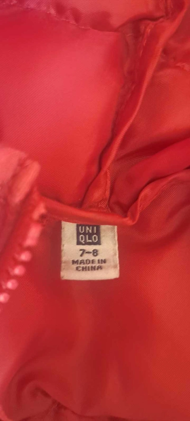 This is a cute and gently pink Uniqlo spring jacket for a child, perfect for transitional weather. It's in good, used condition and is a size 7-8. Brand: Uniqlo. Size: 7-8. Colour: Pink. If the ad is still up, the jacket is still available.