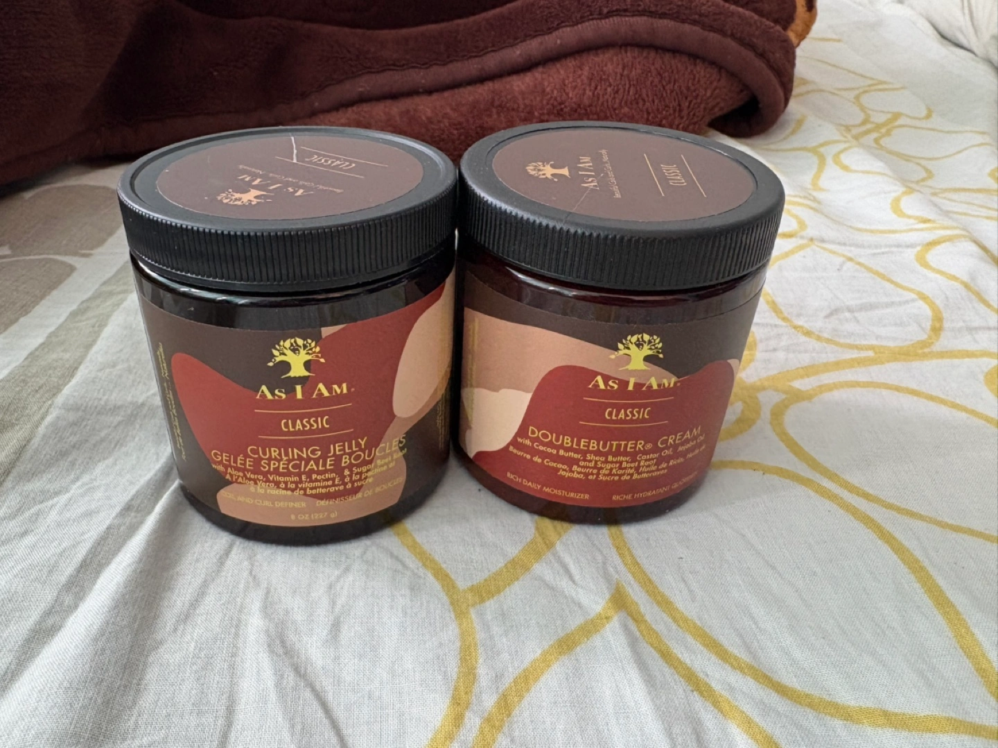 10Two jars of As I Am Classic hair products. One jar is Curling Jelly, the other is DoubleButter Cream. Great for curly hair