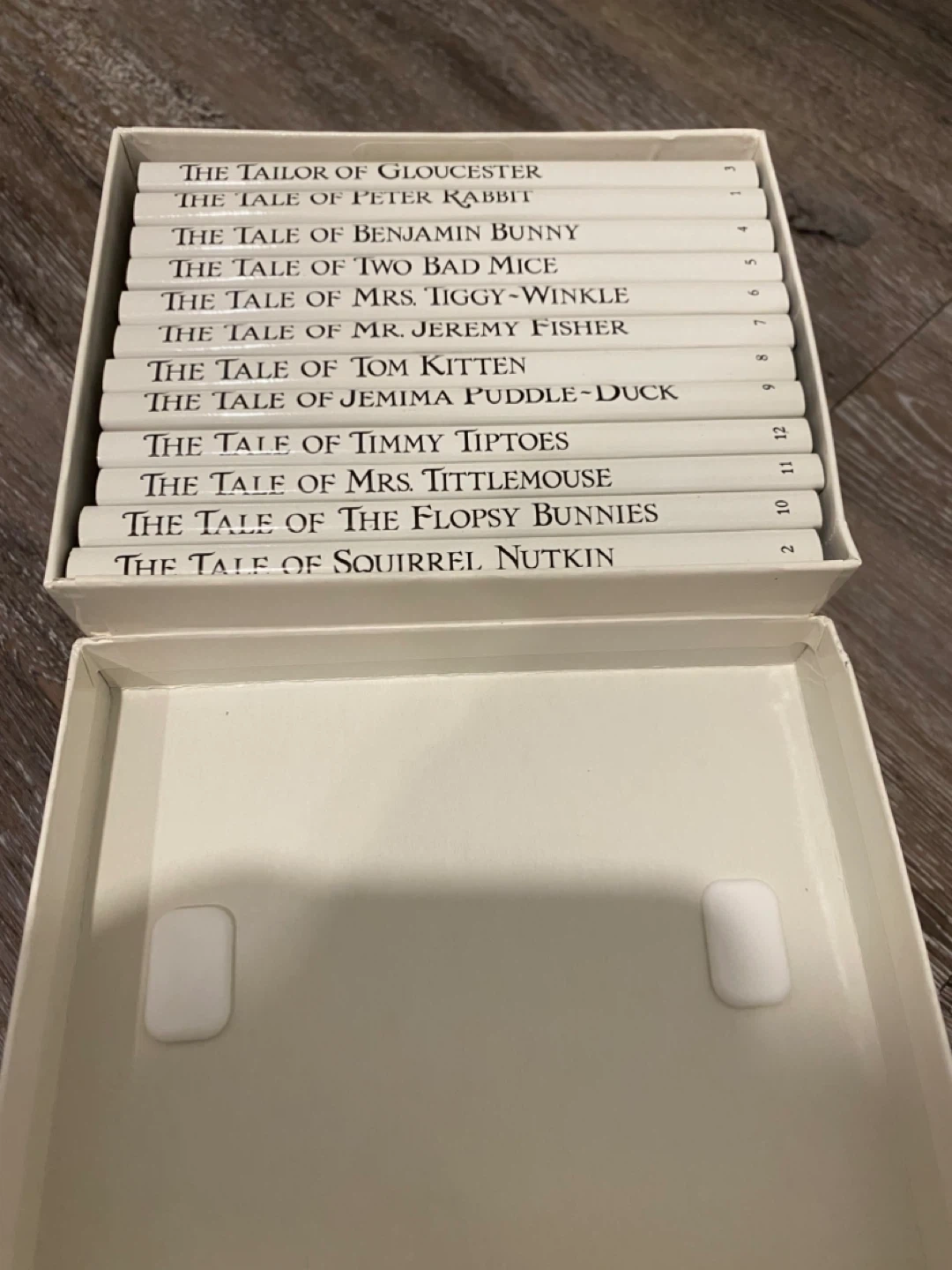 Selling a complete set of Beatrix Potter's Peter Rabbit books! This set includes 12 original Peter Rabbit books in a cute carrying case. Perfect for young readers and collectors alike Pick up Sage Hill NW Cash only (or E-transfer on pick up) Pet and smoke free home Check out my other listings