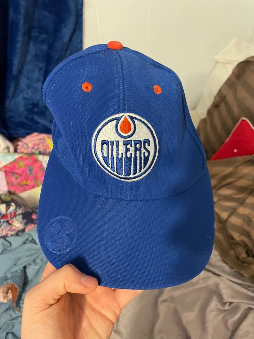 Selling a blue Edmonton Oilers hockey cap! It's in good condition and ready for a new fan. Show your team spirit!