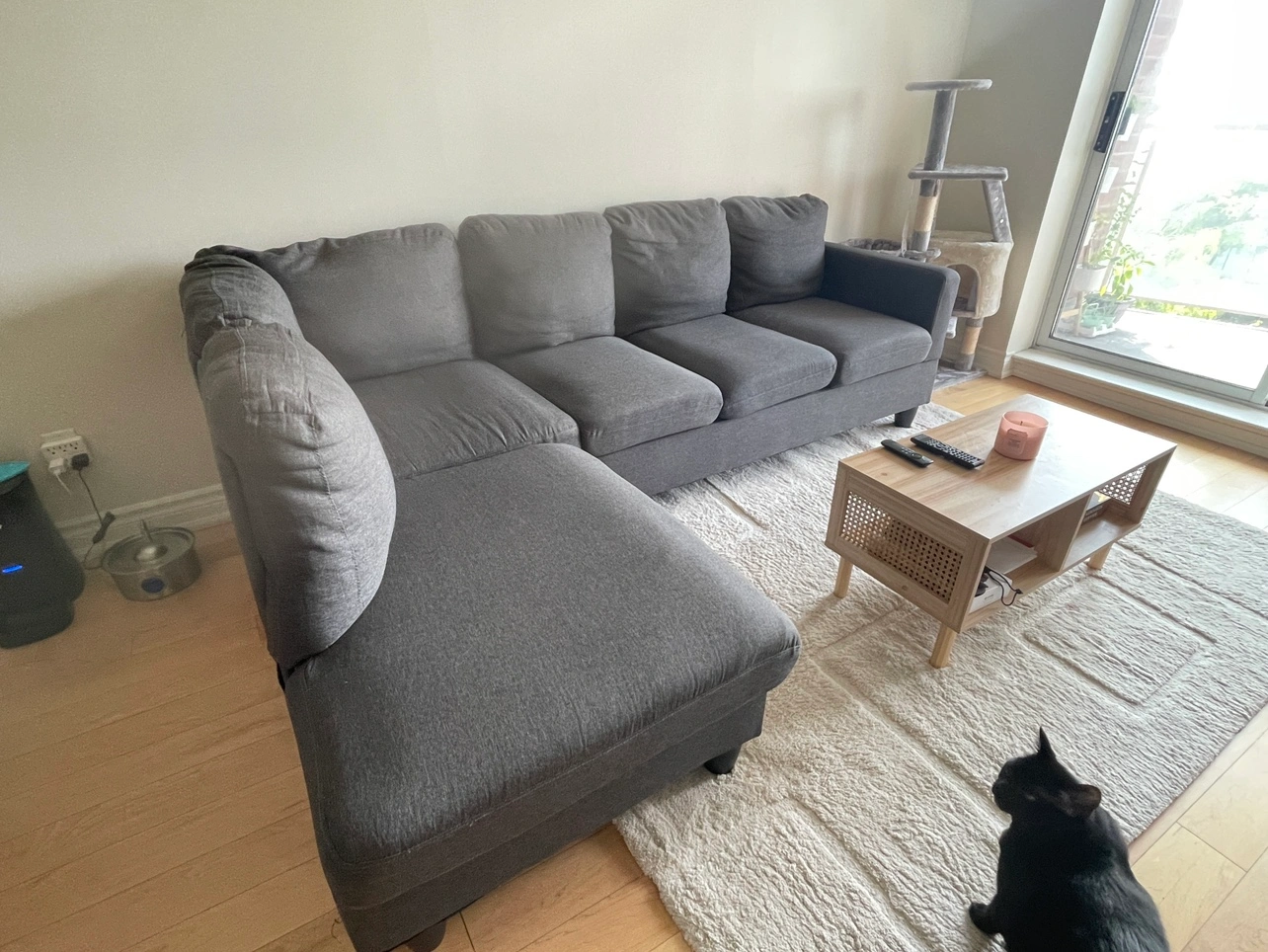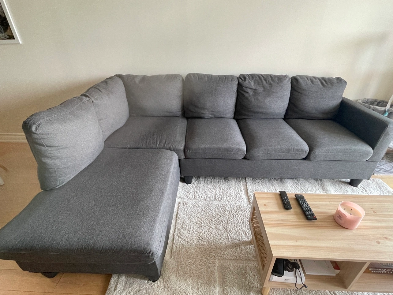 L shaped Grey Sectional Sofa from wayfair. Great for small apartments.
