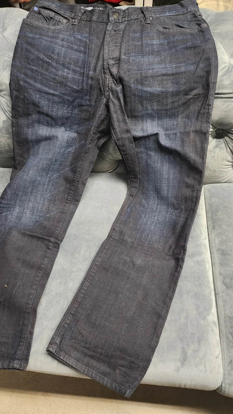 These are Gap 1969 men's jeans in a standard fit. They come in a dark wash denim with a 34x32 size. The jeans are made with a focus on waterless processing for a more sustainable approach. It's a classic look for everyday wear!