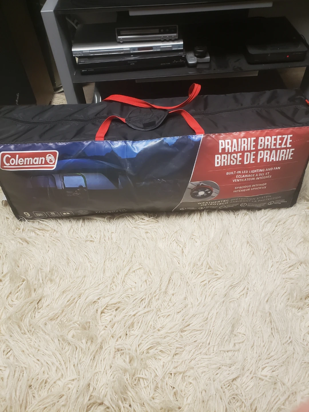 Spacious 9-person tent with built-in LED lighting and fan. WeatherTec system keeps you dry. Includes original bag for easy transport. Great for family camping trips!call or text 5878523330