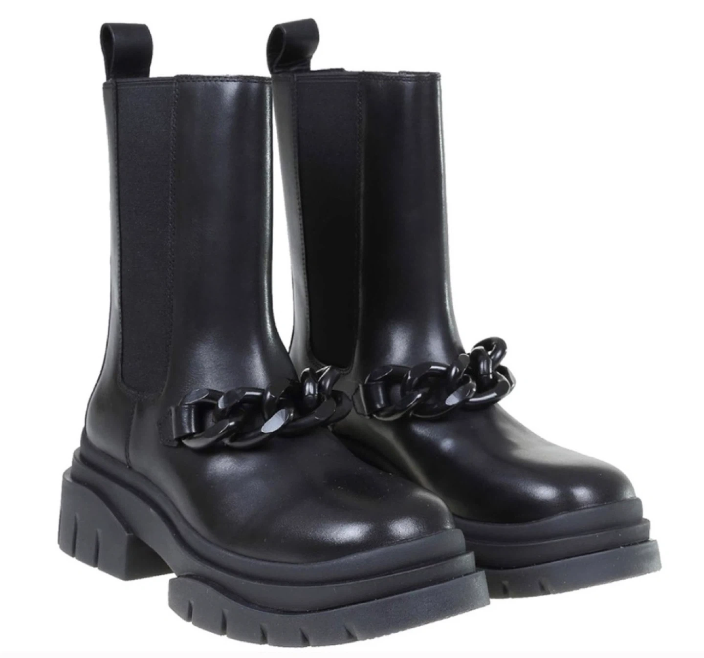These black ASH boots are a stylish addition to any wardrobe! They feature a chunky sole and a unique chain detail. Perfect for adding an edgy touch to your look!