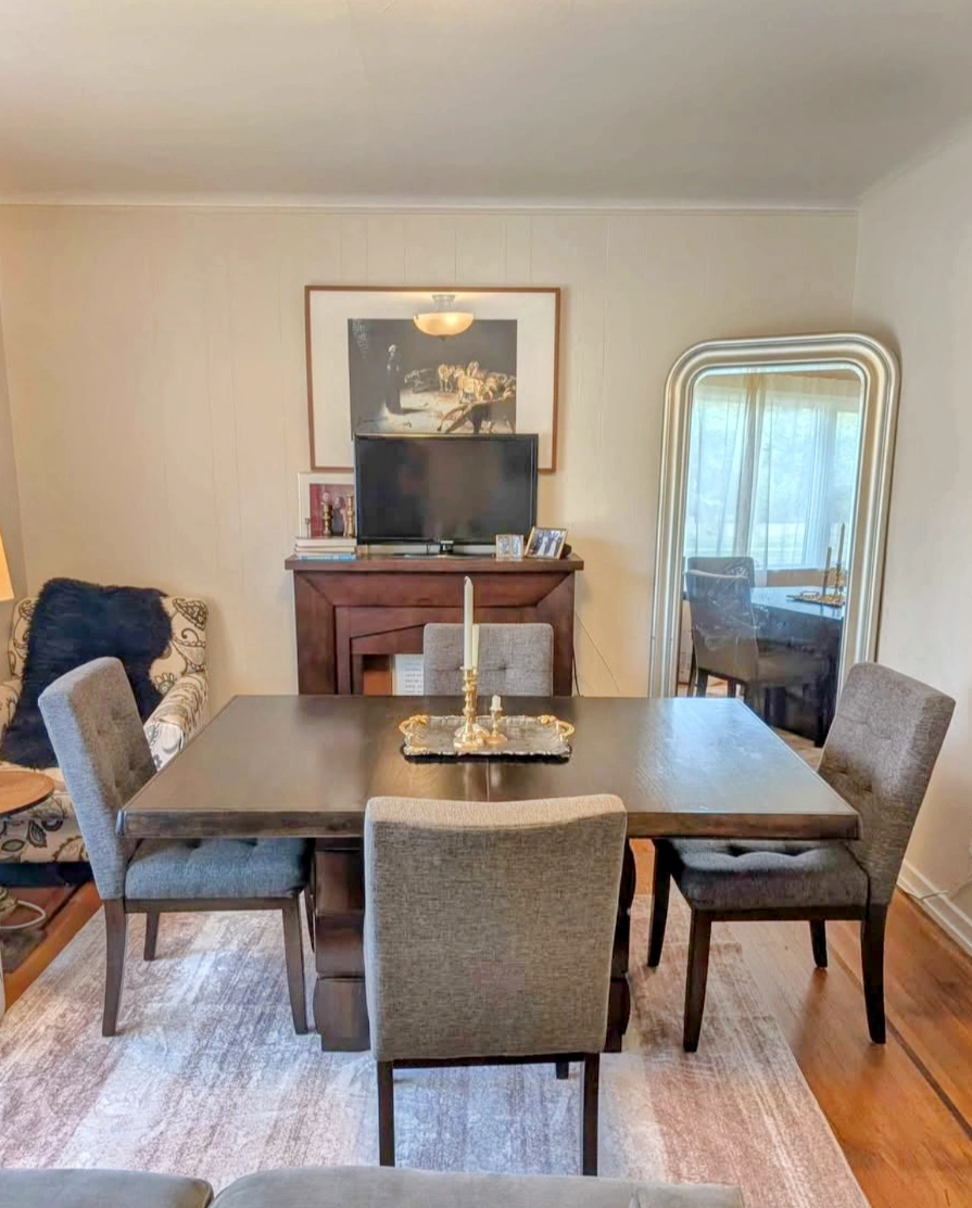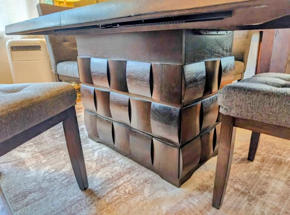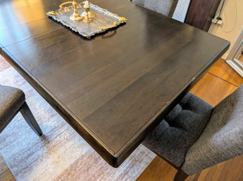 Selling a lovely dark brown extendable dining table, perfect for family dinners or hosting friends! Table only, the chairs have been sold. It's a great addition to any dining room and in good condition.