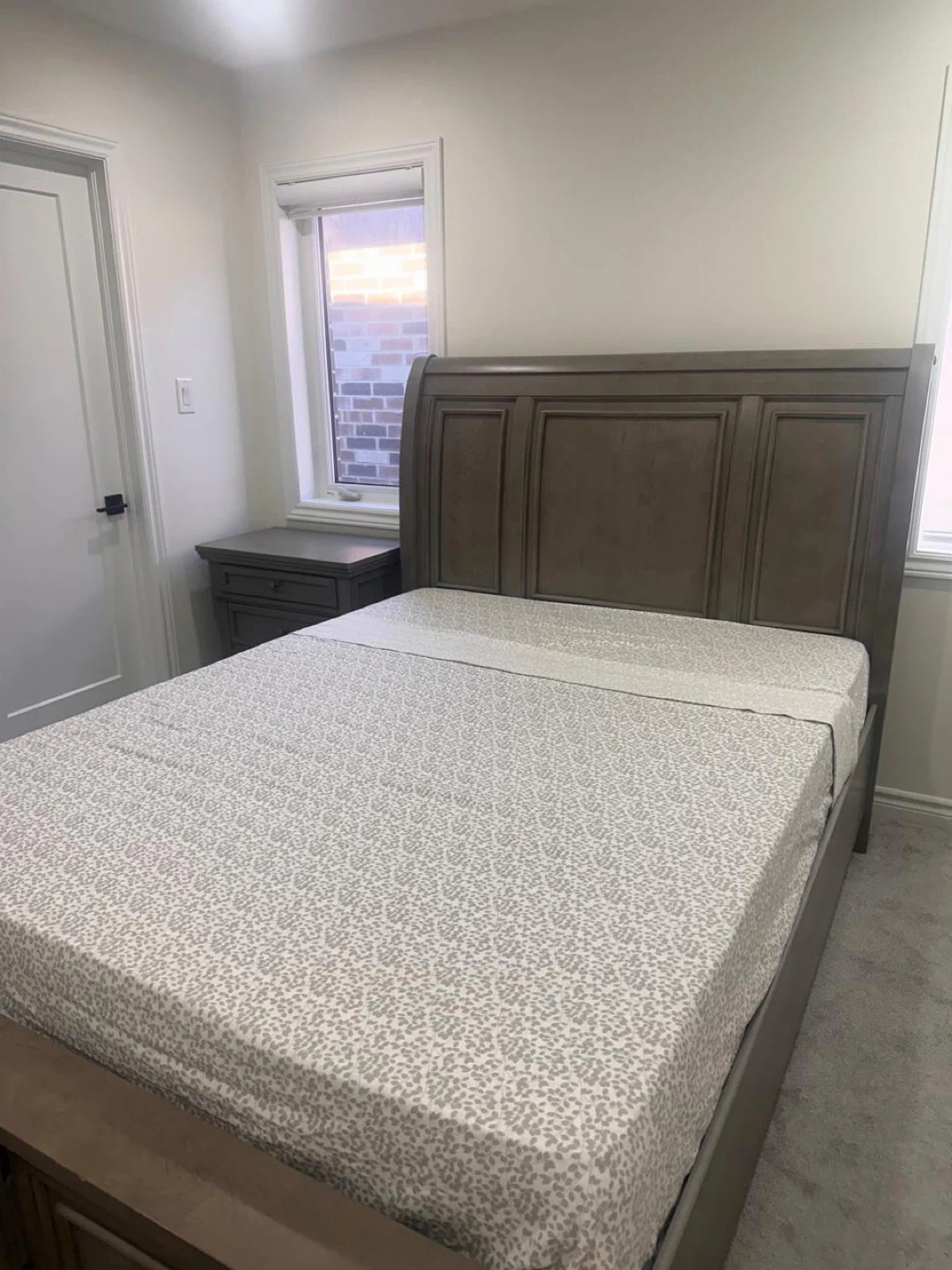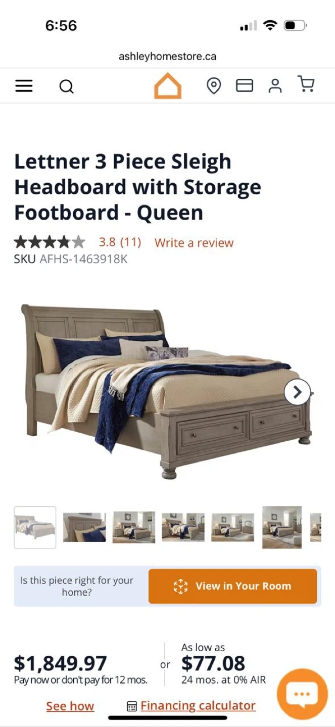 60Ashley Queen Bed & Night Stand - Excellent Condition - Solid Wood Move Out Sale Selling a queen bed set from Ashley Homestore. This is the Lettner 3 Piece Sleigh Headboard with Storage Footboard set, and it comes with the matching Lettner nightstand. The original price for the bed was $1849.97 (plus tax) and the nightstand was $729.99 (plus tax). The bed and nightstand are in great condition. Selling both for a price of $1100.