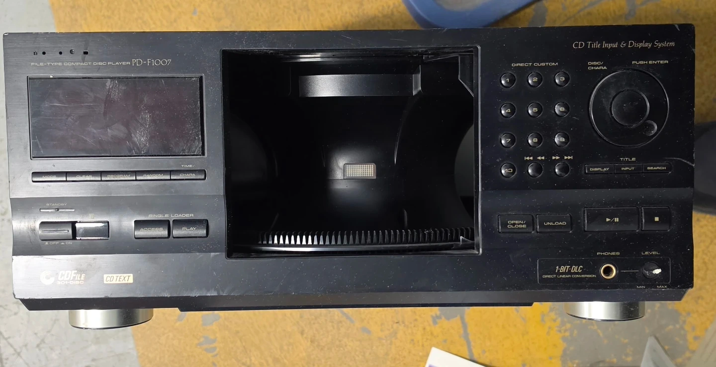 This is a Pioneer PD-F1007 file-type compact disc player. It features a CD Title Input & Display System and supports CD Text. It's a single loader with direct linear conversion and 1-bit DLC.
