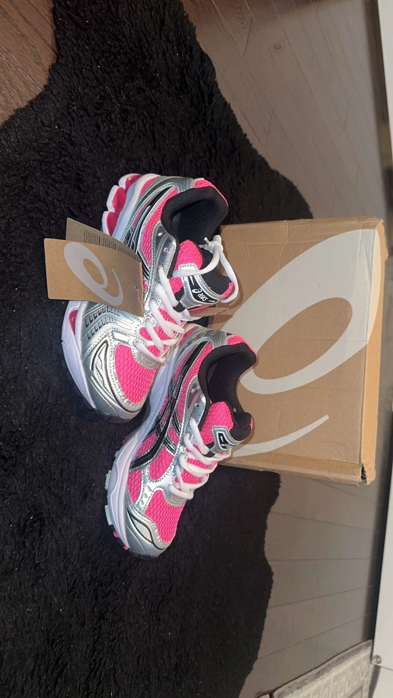 Selling a pair of Asics Gel-1090 size 5.5 shoes in pink and silver! They come with the original box.