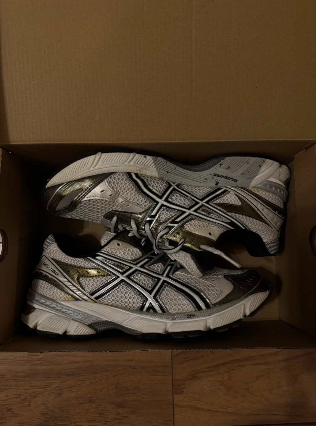 A pair of Asics GEL-1160 (Model has been discontinued)for Size 7 Woman or 5.5 Men running/casual shoes. They've been used, but still have lots of life left in them for running or everyday wear! I have freshened them up recently. Note: - Please see last slide for imperfections - When purchased, I will have the shoes prepared in the box and stuffed with paper