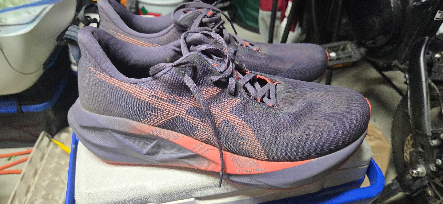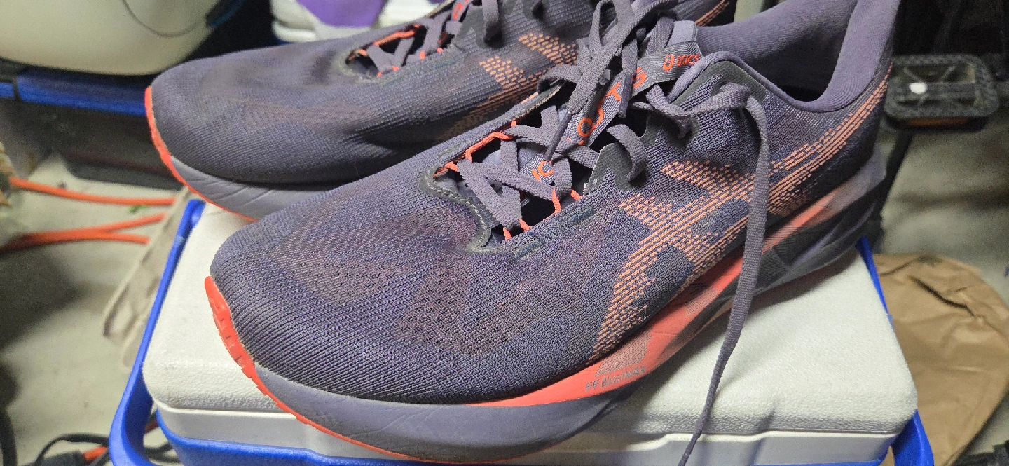 Selling a pair of Asics Novablast 5 running shoes. They show signs of wear on the soles, as pictured, but still have lots of life left for your runs!