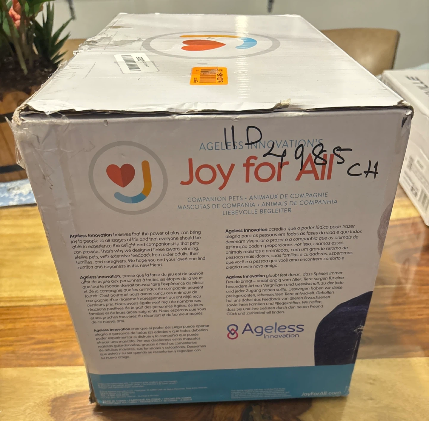 Selling an Ageless Innovation Joy for All companion pet cat. It's a silver cat and comes with its original box and a brush. This sweet cat will reward your loved one's tender petting with gentle movements and content purrs.