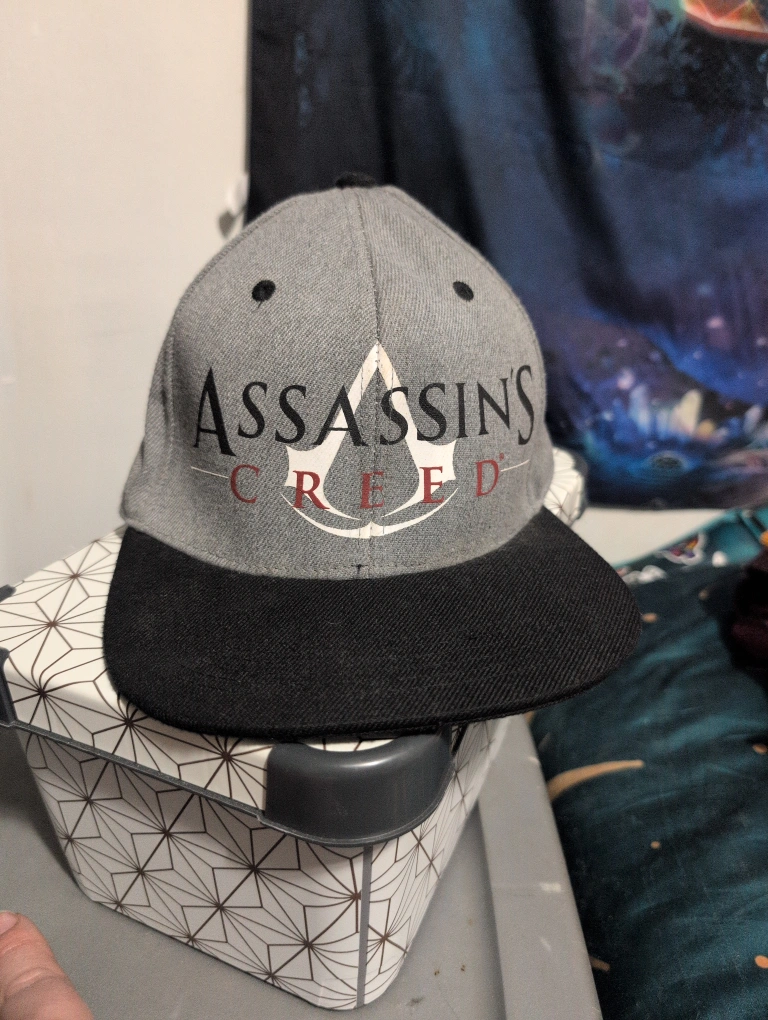 15Grey and black Assassin's Creed hat. It's in great condition and ready for a new home! Adjustable strap for a comfortable fit