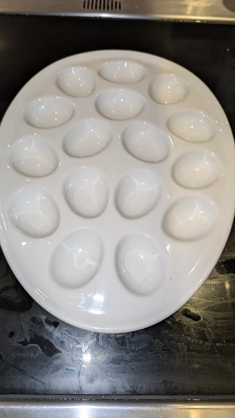 75Voici une assiette à 16 oeufs ou escargots blanche en céramique. Elle est en parfaite condition et prête à accueillir vos délicieux escargots! Idéale pour les amateurs de cuisine française ou pour impressionner vos invités lors d'un souper spécial