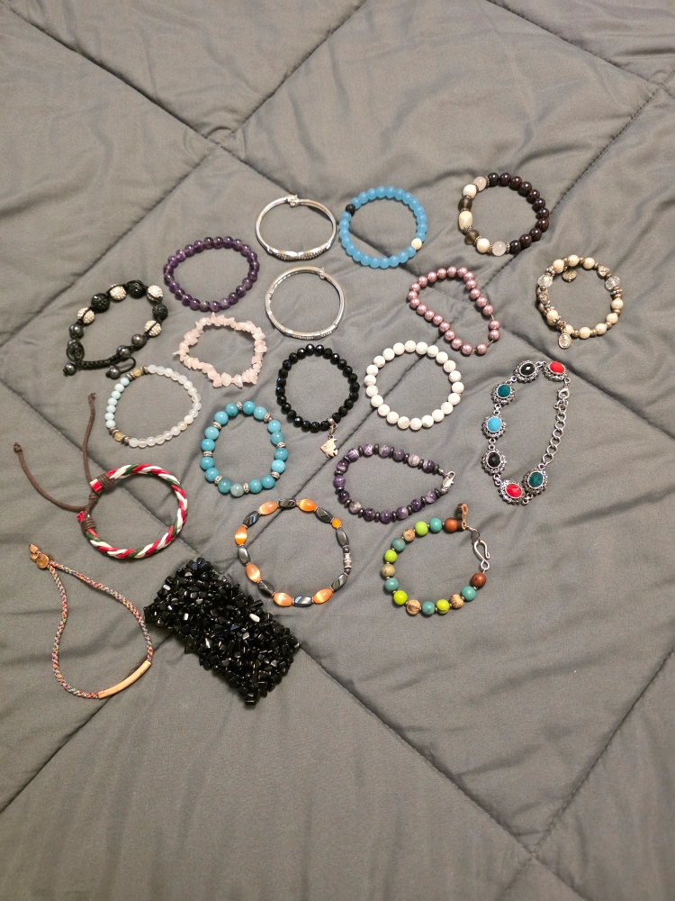 A beautiful black stone bracelet and assorted bracelets. In great condition and would make a lovely addition to any outfit