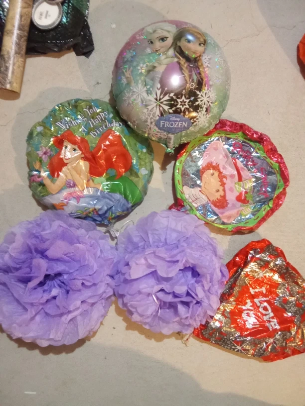 Selling a collection of character balloons featuring Disney's Frozen, Ariel, and Strawberry Shortcake! These would be perfect for a birthday party or special event. They're in good condition and ready to bring some joy to your celebration
