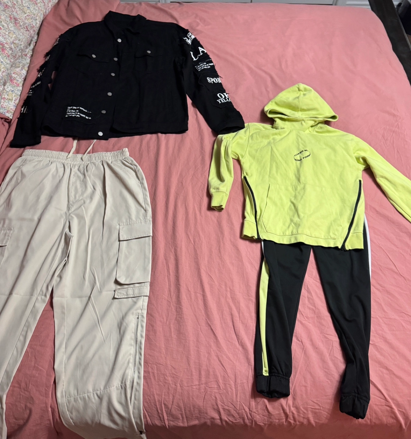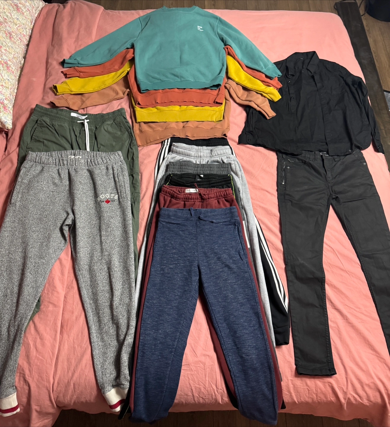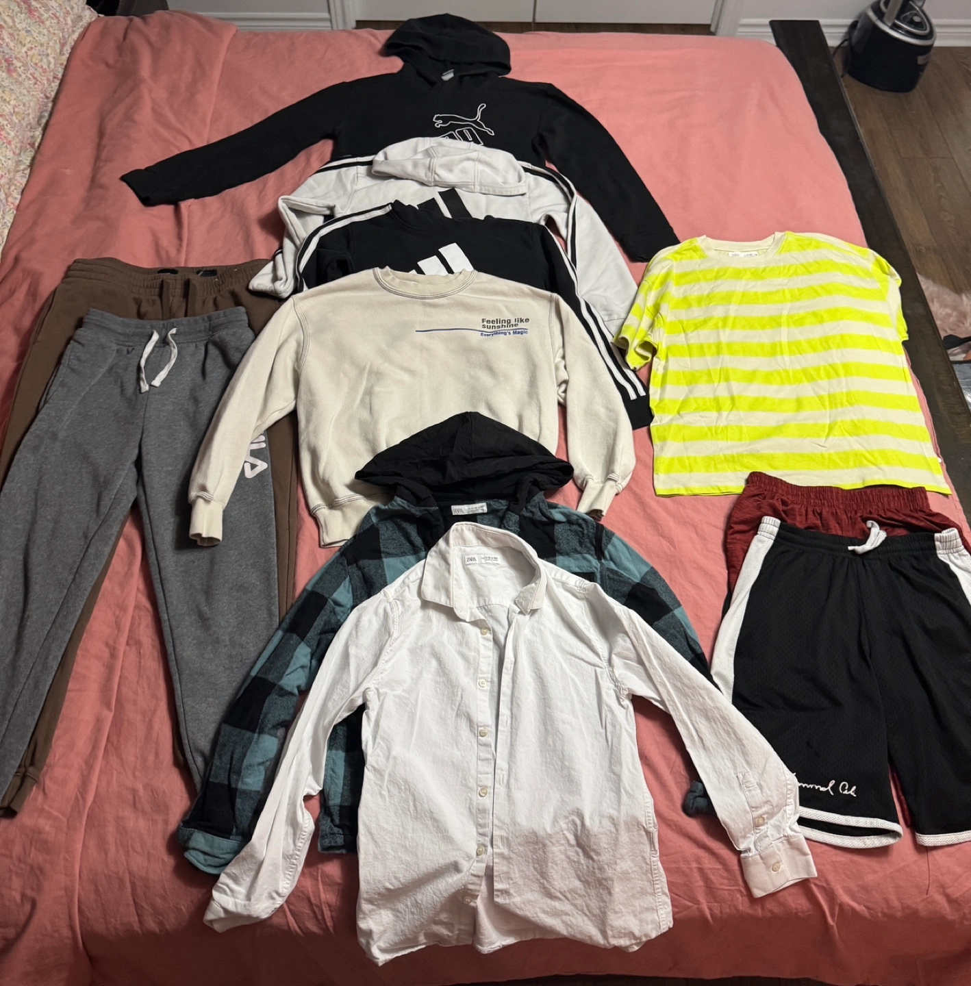 Sweaters/Hoodies - $15 Shirt and T-Shirts - $5 Shorts and Jeans- $10 Complete sets (Must buy complete) - $20 Most clothing items from Zara and H&M Clothing ranges from ages: 11-12, 13-14 Few men’s clothing; Med to Lrg Original prices are firm Buying 2 or more items is negotiable