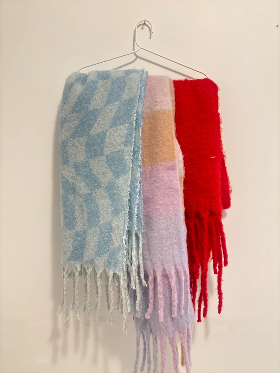 0Three Scarves for $10 Here are some colourful scarves! They're in great condition and would be perfect for adding a pop of colour to your wardrobe or keeping you cozy on a chilly day
