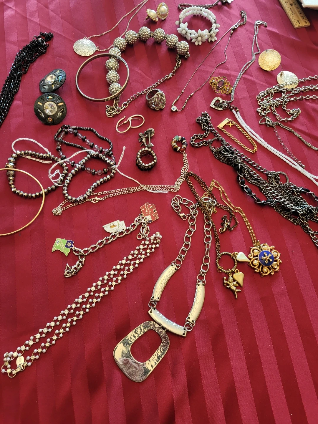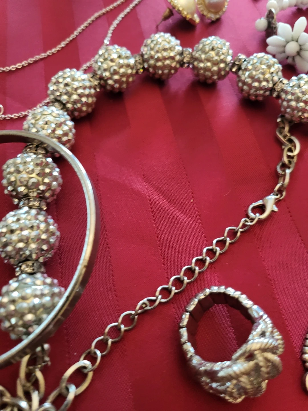 134A collection of costume jewelry, including necklaces, bracelets, rings, and earrings. Great for adding some sparkle to your outfits! Price includes all items. 32 wearable excellent condition. PU on Worthington off St Annes or Whyte Ridge.