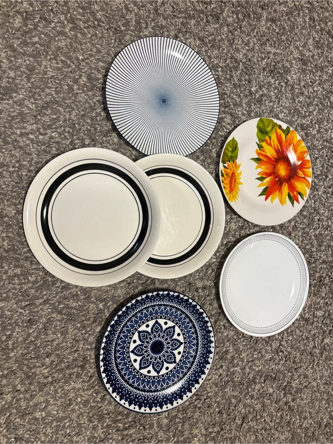 17Selling a set of assorted decorative plates. They feature different designs and colours, perfect for adding a touch of style to your table setting or as decorative pieces around the house total 7 plates
