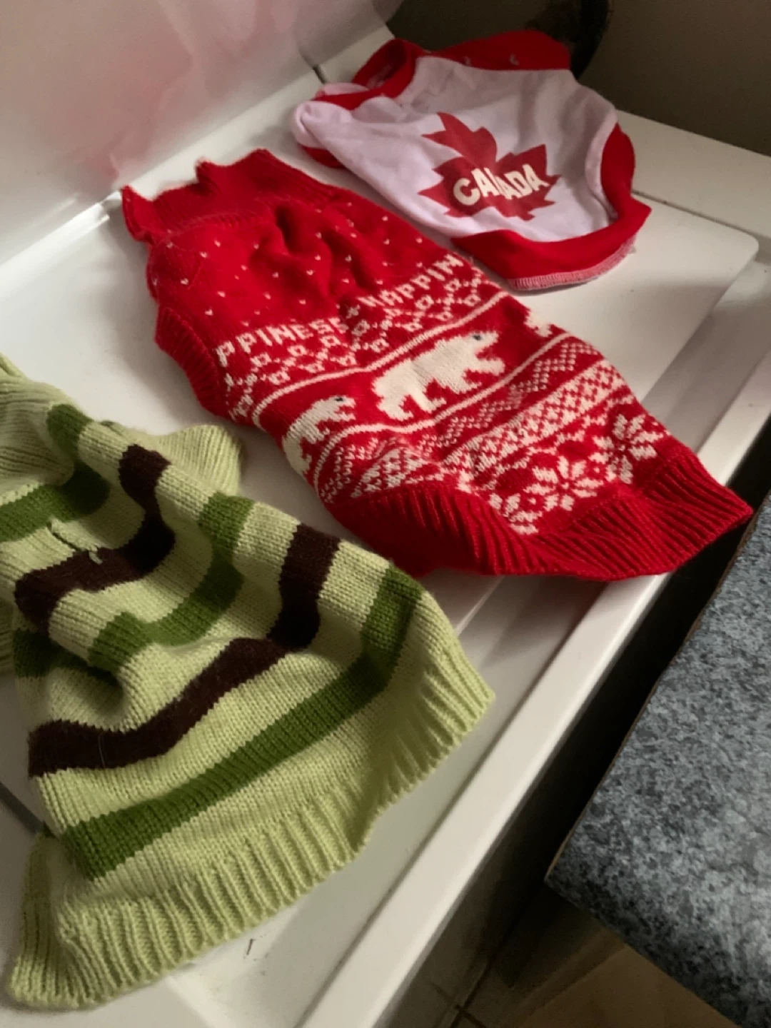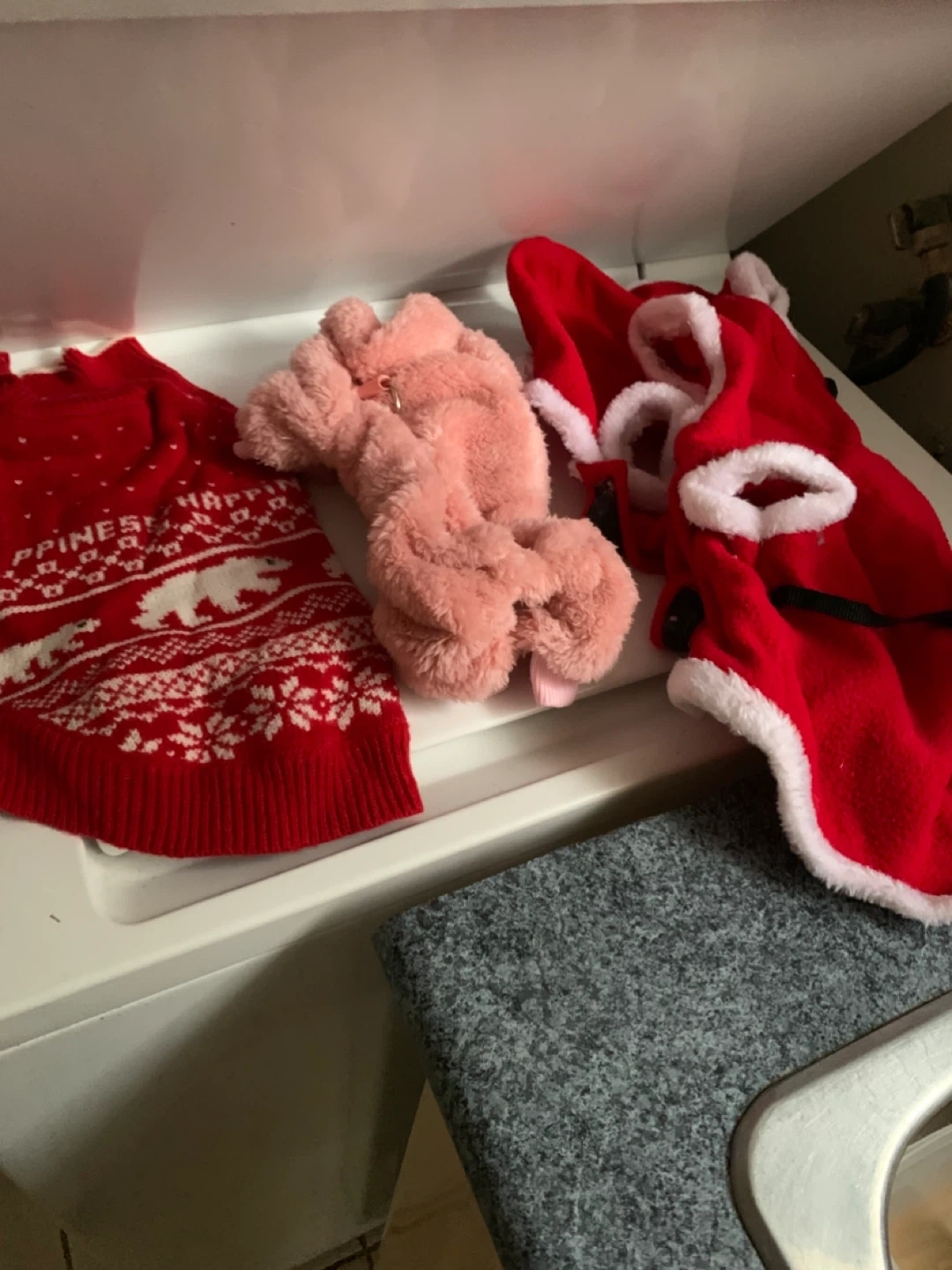 94Selling a variety of dog clothes, including sweaters, raincoats, and Halloween costumes! All in good condition and ready for your furry friend to stay stylish and cozy Medium and small Pick up by Monday All for 20
