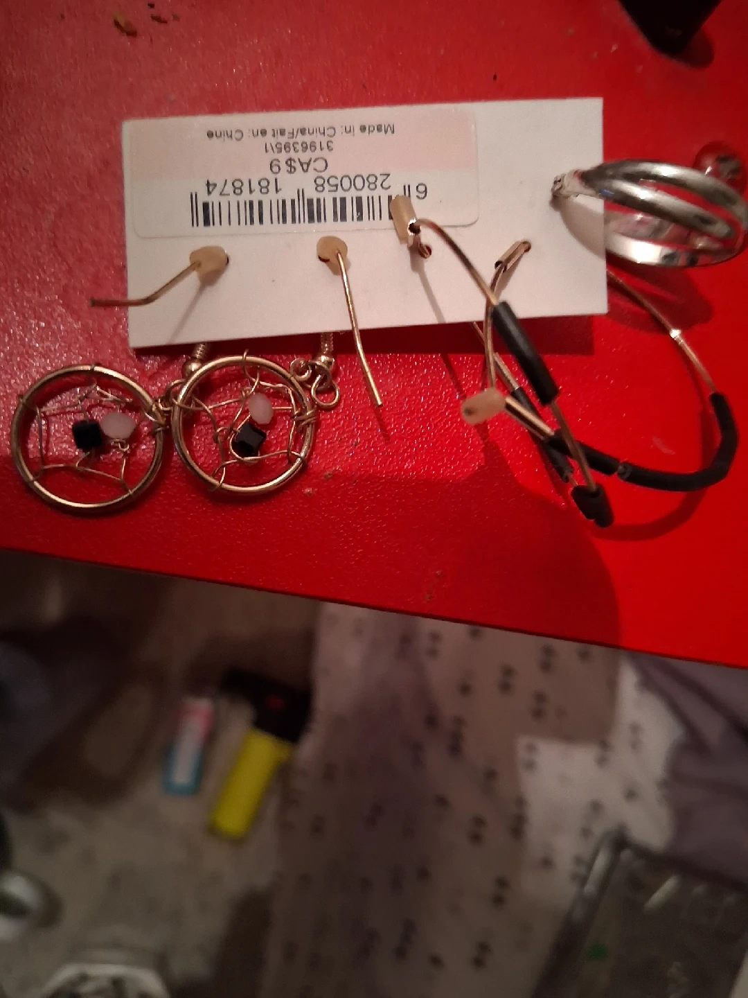 122Selling a set of assorted earrings still on the original card! The card says they were originally CA$9.99. Plus an additional single silver earring attached to the side. Free.