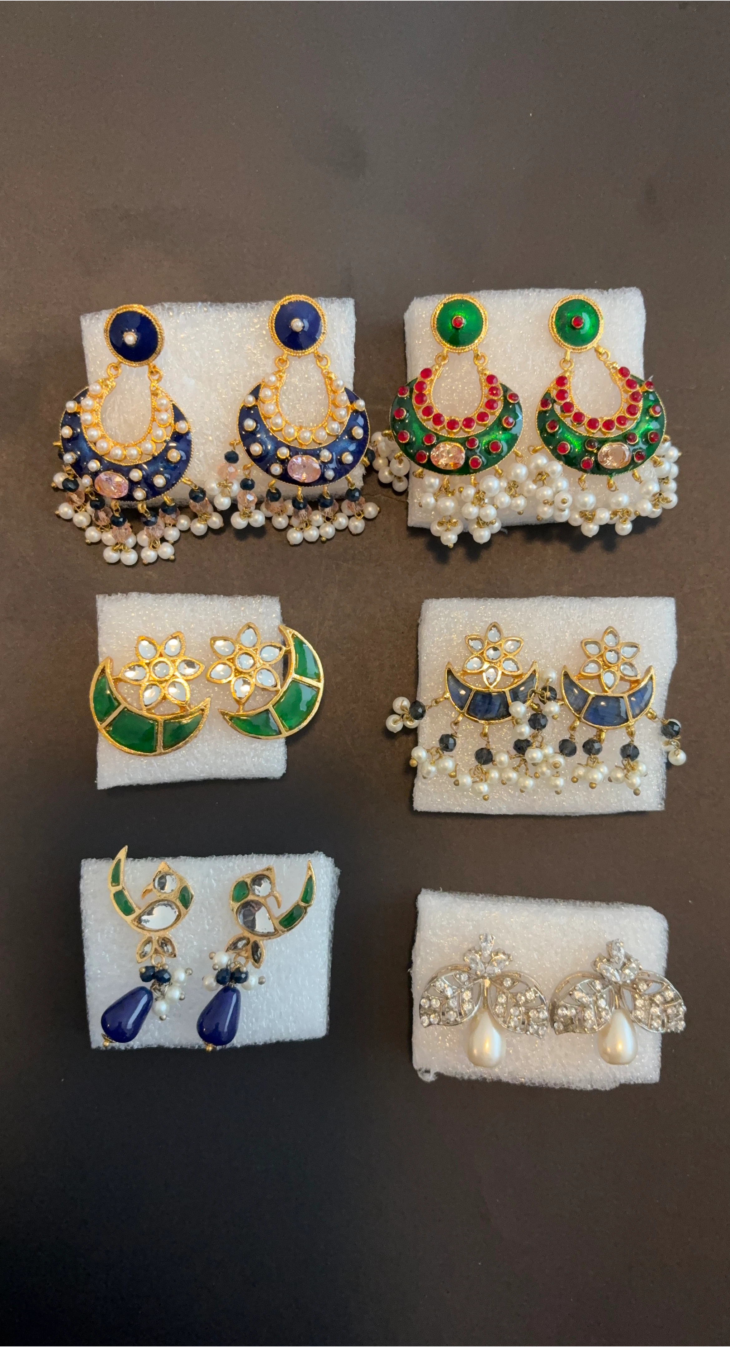 Selling a collection of assorted fashion earrings. There are a variety of unique designs, including crescent moon, floral, and teardrop styles. The earrings feature colourful enamel and pearl accents. Perfect for adding a touch of elegance to any outfit!