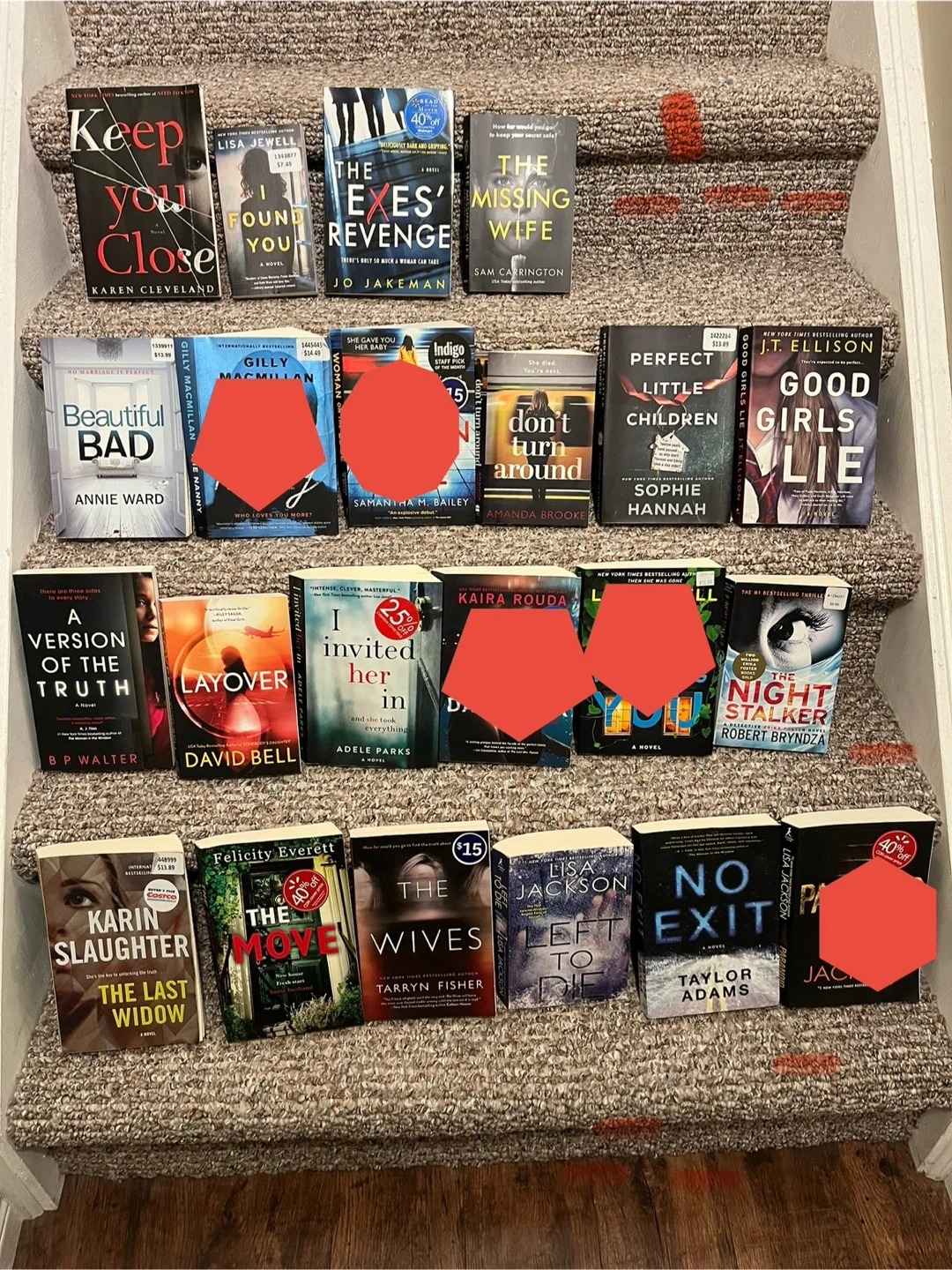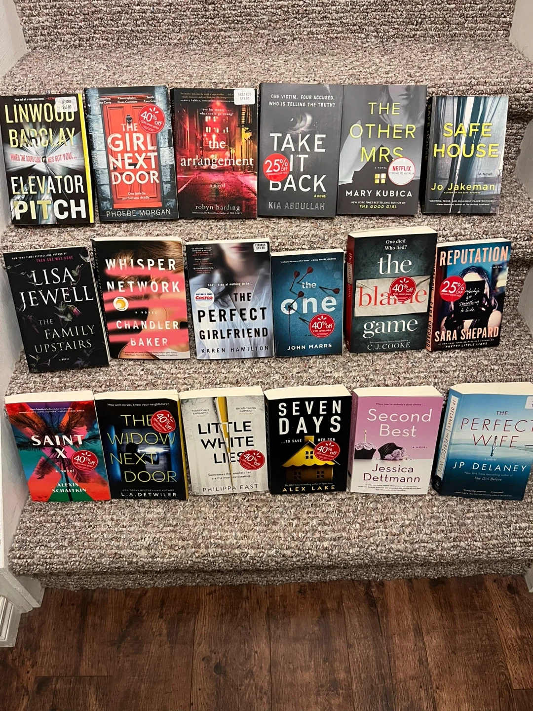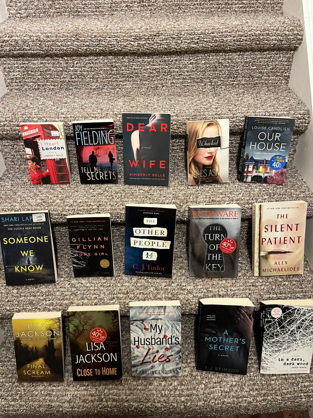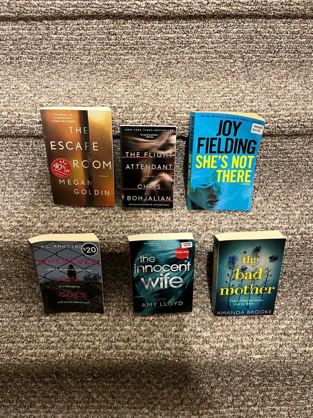 A selection of fiction books by various authors. Perfect for anyone looking for a good read! Titles include a variety of genres, from thrillers to dramas. Grab a few and dive into a new story today. $5 each or 6 for $25