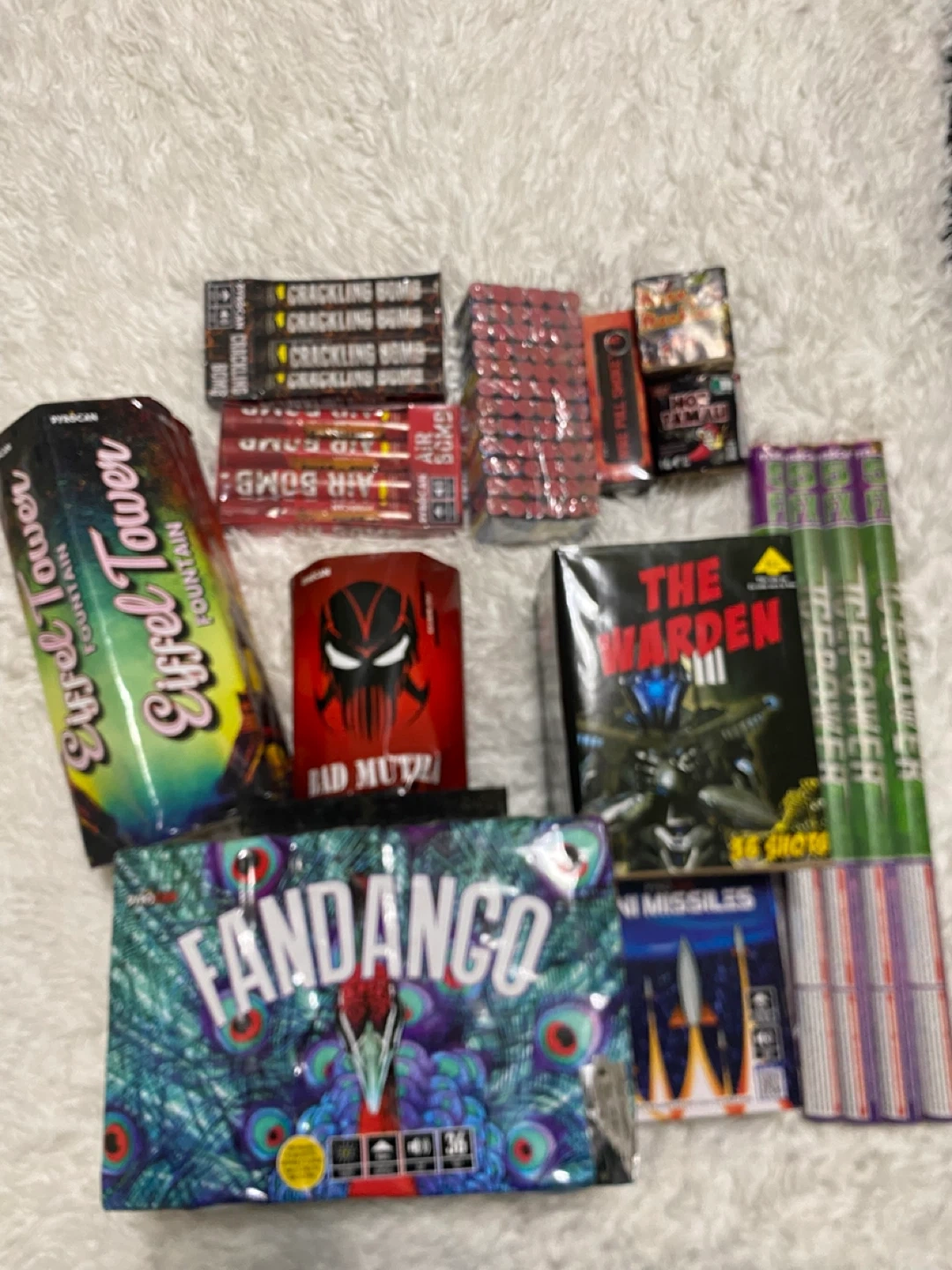 10Selling a variety of fireworks, good prices not scamming Eifel 65 Fandango 95 Air.bom 20 Crackling bom 20 Bad mutha 60 Warden 50 Ice.power 30 Missile 60 Smoke bomb 10 Red pack 40 between smokebomb and air/Crackling bom. Hot tamale 10 Above that 10 Text me if interested at 236 818 5992 Can negotiate