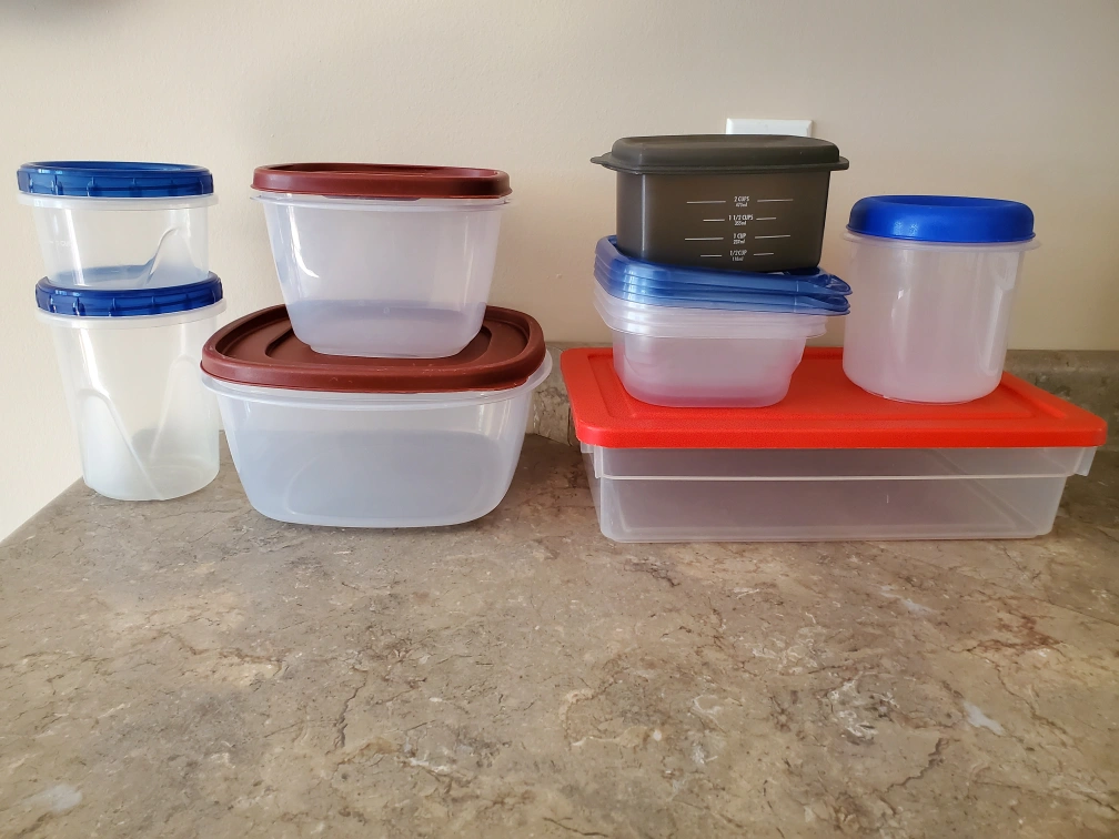 157Assorted food storage containers. They come in various shapes and sizes. Perfect for leftovers, meal prep or pantry. All have lids and are in good condition.
