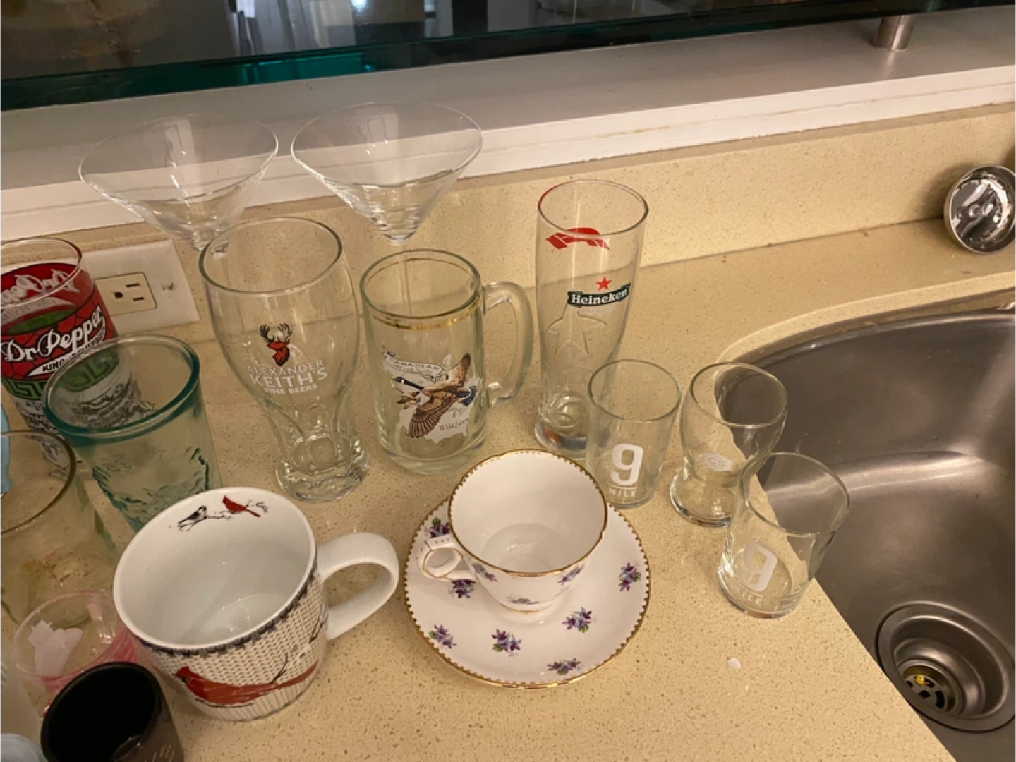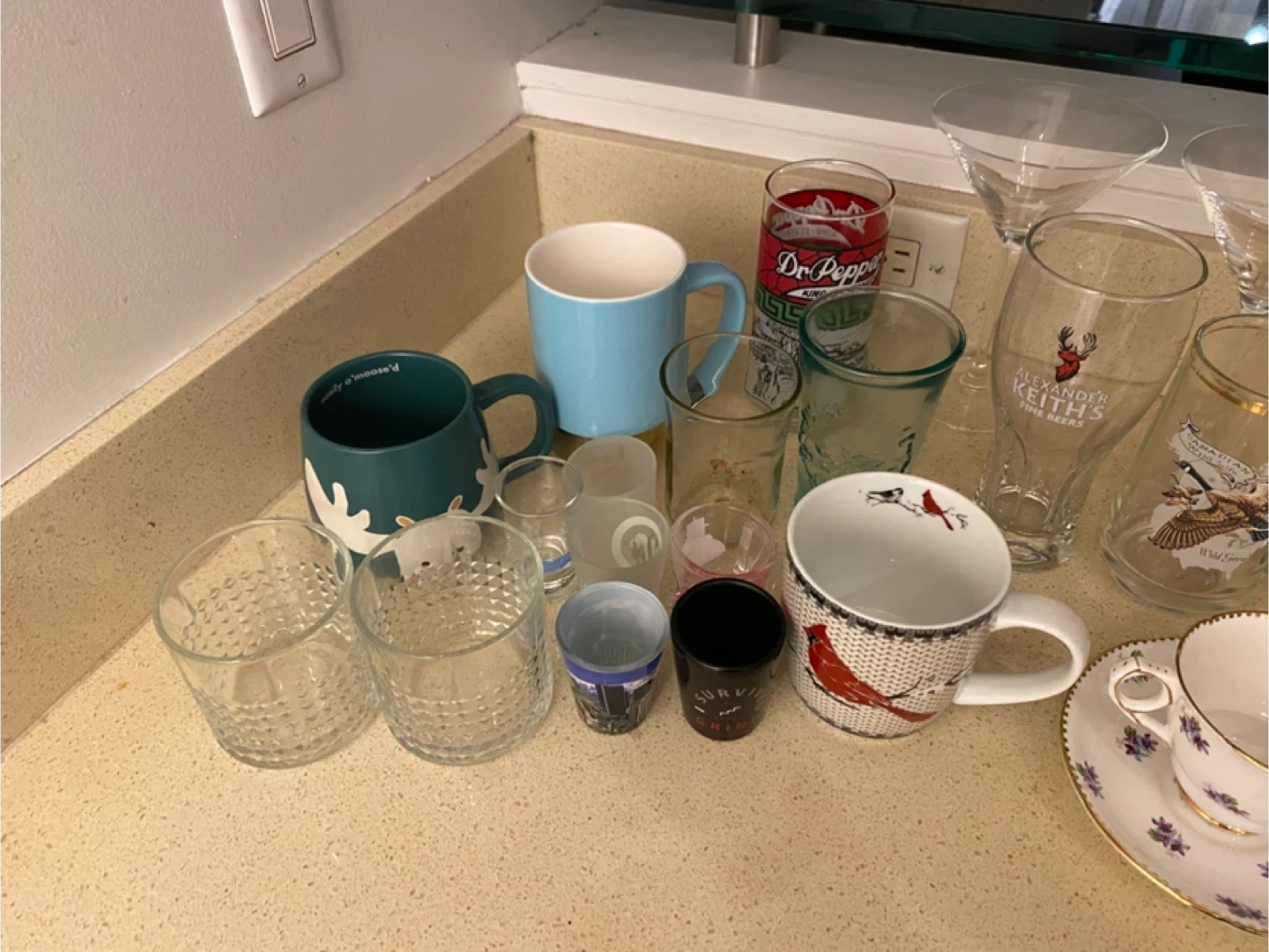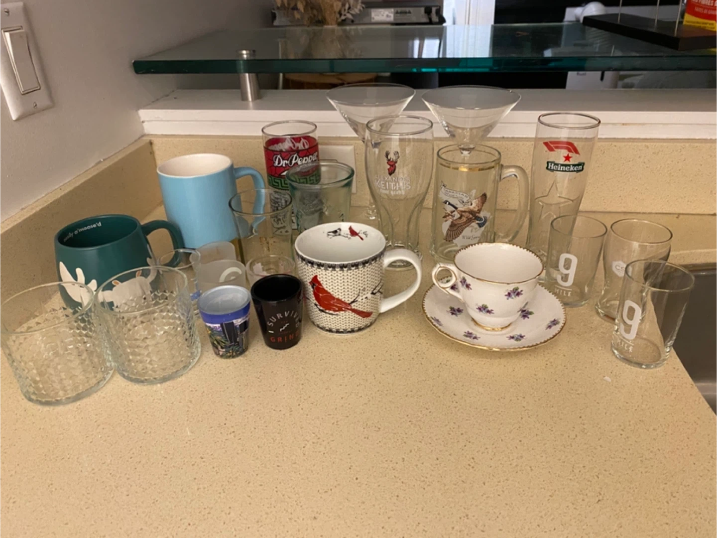12323 glassware for only $15!!! Selling a collection of assorted glassware! There's a variety of mugs, beer glasses, and teacups. Perfect for anyone who just moved and starting over again! Selling everything for $15! You get 23 glassware for $15!!!